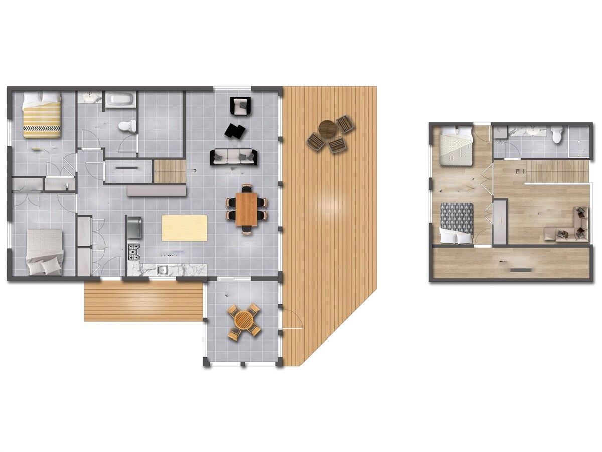 Step outside and breathe in the fresh air! This brand new cottage is the perfect place to unwind and enjoy nature. Here are just a few of the outdoor highlights: a spacious deck to soak up the sun, a cozy firepit for evening gatherings, and a comfortable outdoor living room to relax and take in the sights and sounds. Don't forget to fire up the propane BBQ for a delicious meal at the iron dining table. And for those chillier nights, head to the screened porch with heated floors for a warm and inviting dining experience. Plus, you'll enjoy the privacy of this lot, which backs onto a protected forested area in the charming village.