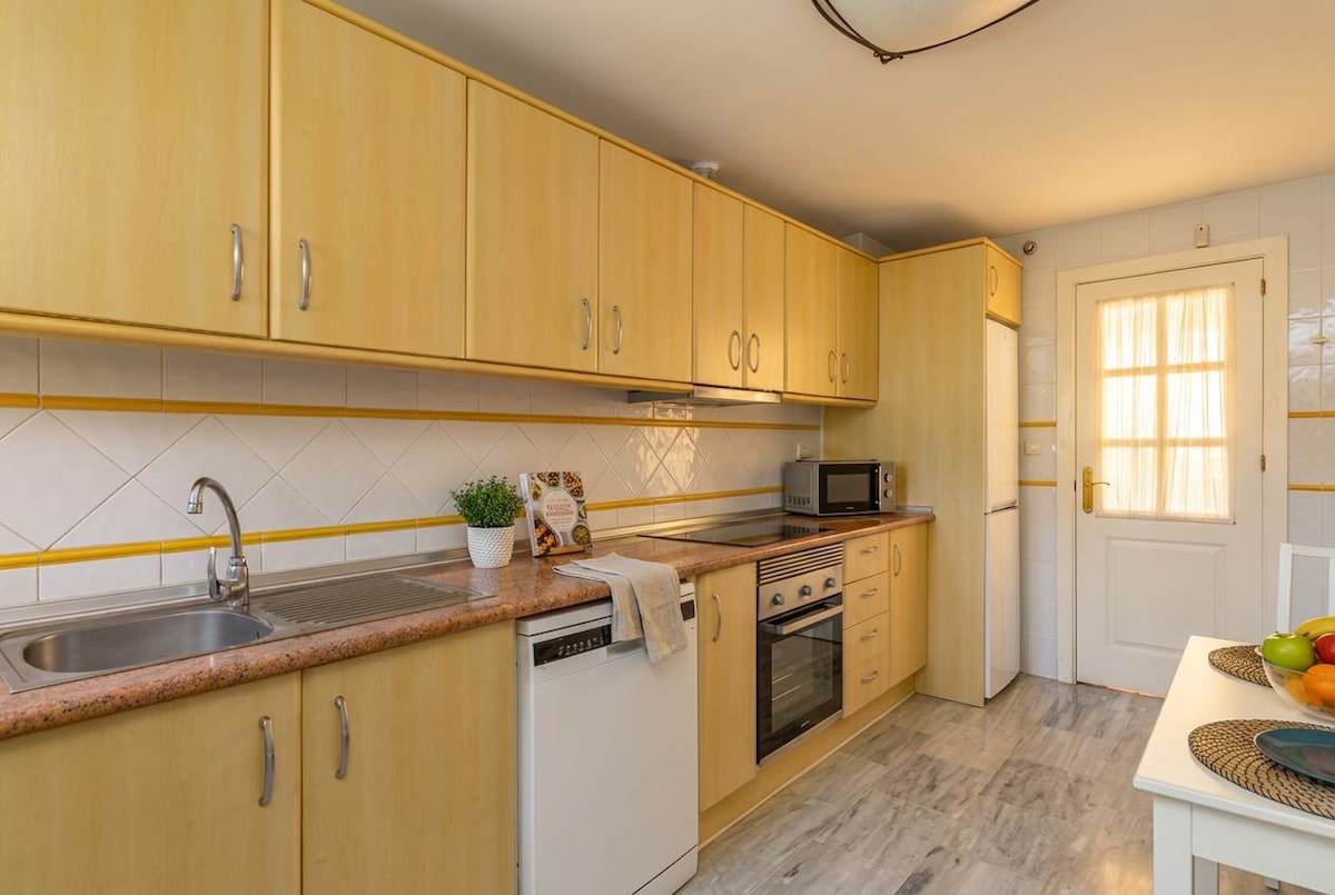 When you step into the apartment you are met by a spacious hall with the fully equipped kitchen directly to the left, here you have a dishwasher, washing machine, large fridge and freezer, stove with oven, coffee maker, toaster and much more that you need to cook on vacation.Further to the right from the front door you enter the large living room, here you have a large dining area for up to 6 people, a comfortable sofa bed and a large smart TV with international TV channels.