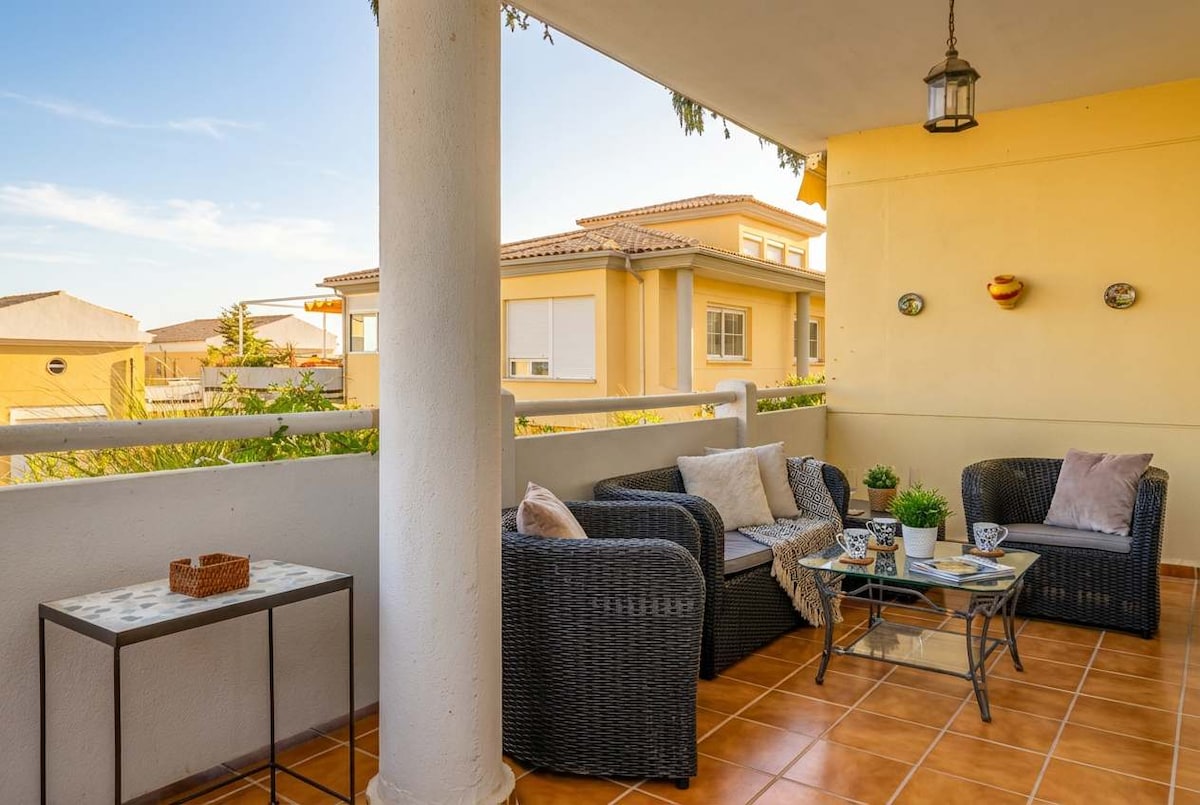 Further out of the living room you come out to the lovely terrace, here you have sea views from the dining area, a lounge corner and a charcoal grill (limited use during the dry periods of summer)