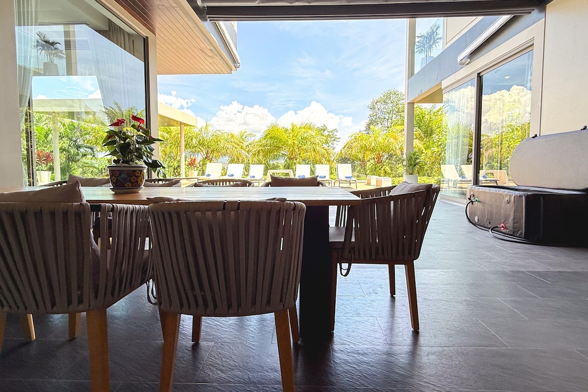 * Private infinity pool: Stunning mountain and greenery views