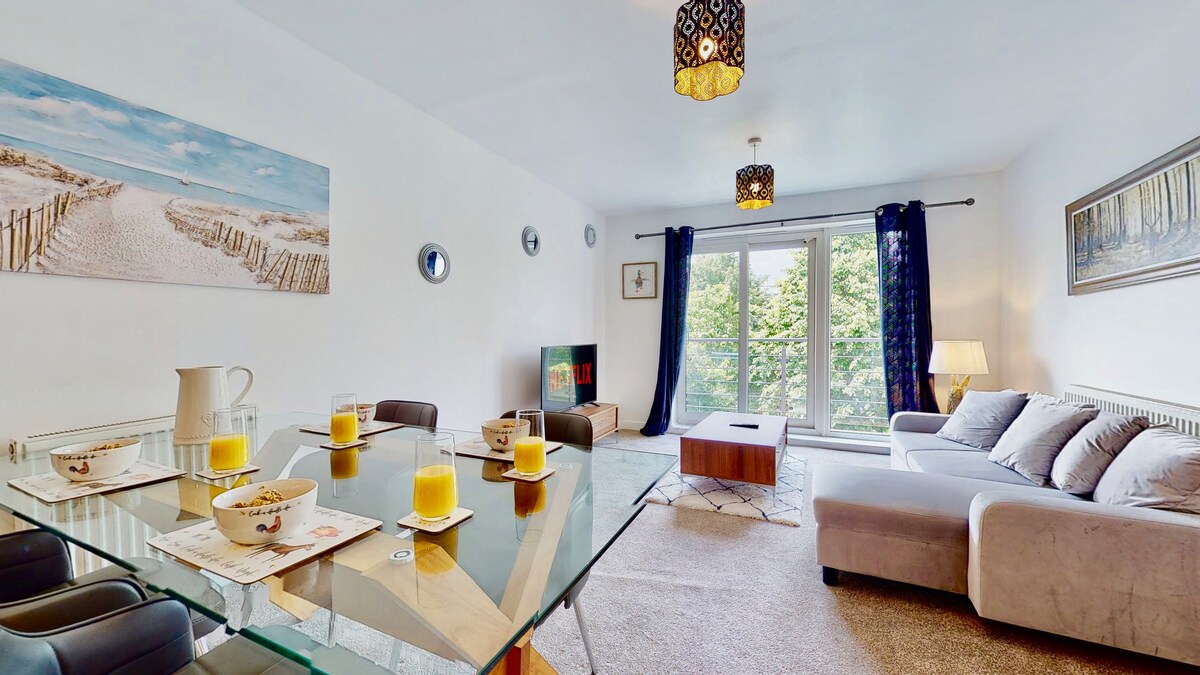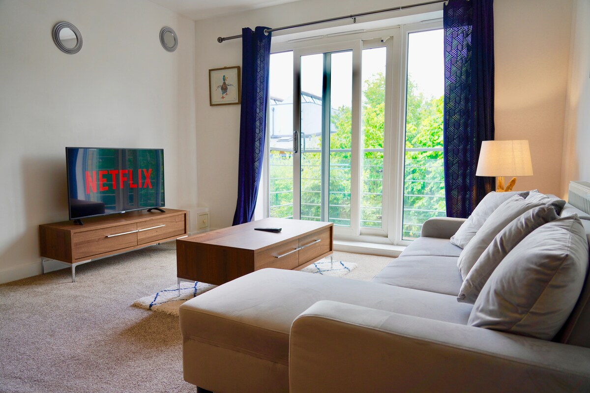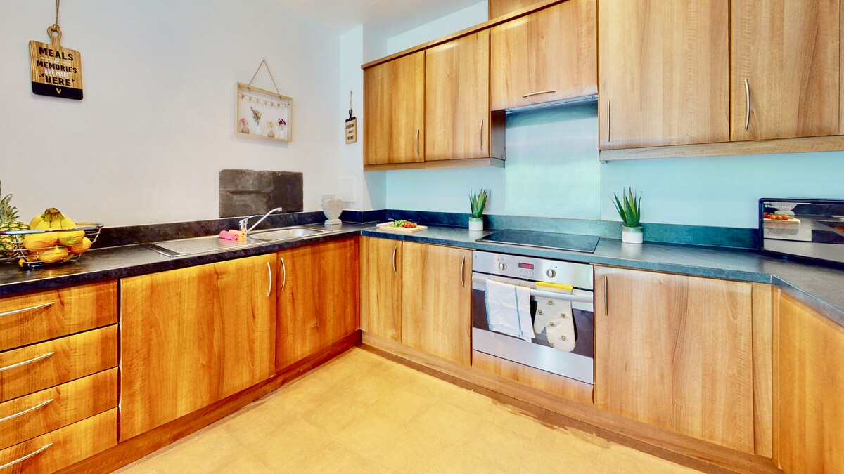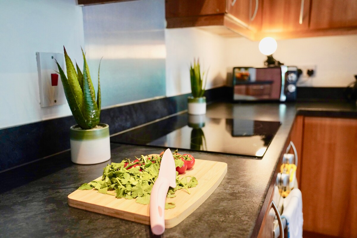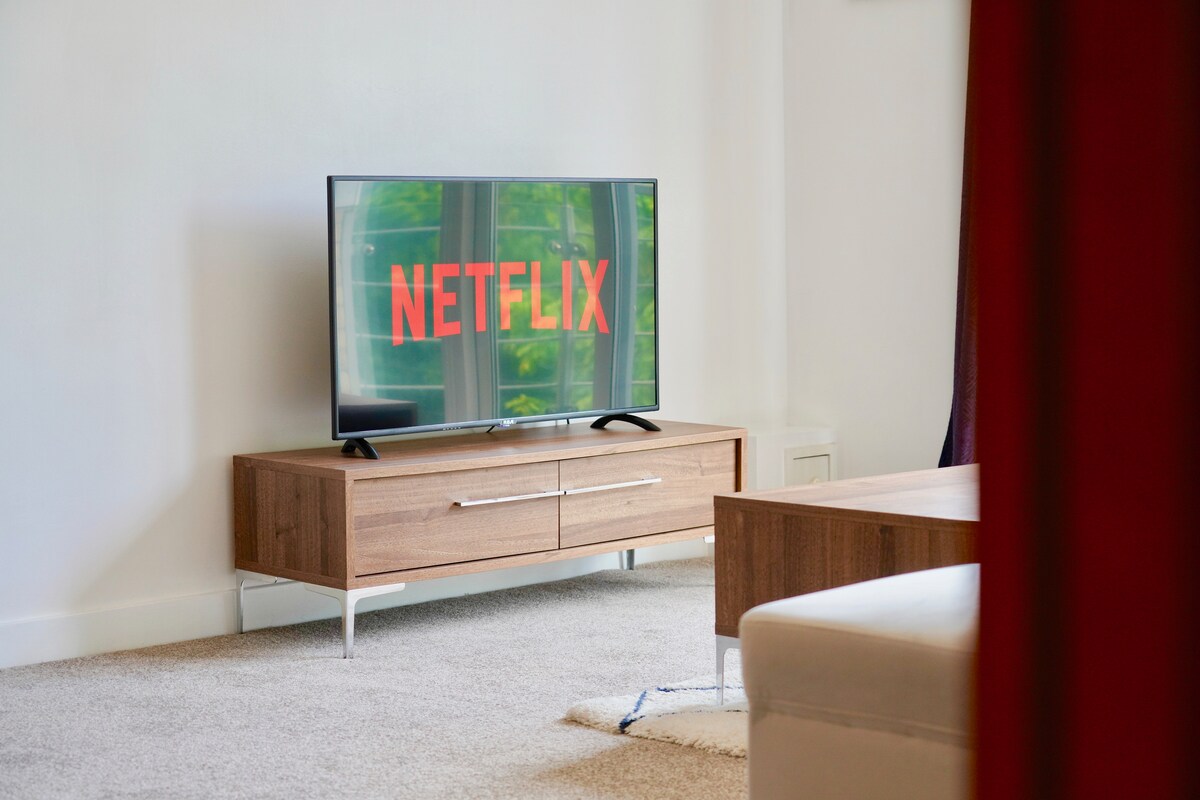 This apartment has a contemporary design with everything you might need for a long-term stay and to get nice and conferrable and settled in. The smart TV provides Netflix, Amazon Prime, ITV Hub, and hundreds of different channels.