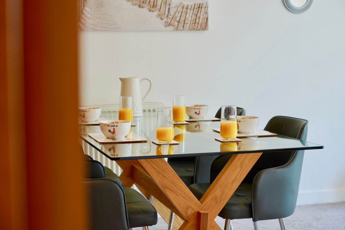It has a large open plan kitchen, dining area and lounge seating area with a brand-new smart TV with Netflix, streaming services, and super-fast Wi-Fi for home working. \The two bedrooms (1 double Ensuite) and one single have double-glazing, brand-new beds, and up market mattresses for a great night sleep.