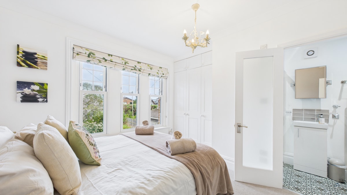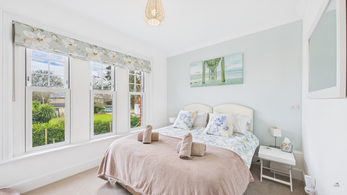 The Nab House on Beach House Lane is a beautiful 2-bedroom coastal apartment in the popular village of Bembridge on the Isle of Wight. Situated on the first floor, this light-filled property offers a blend of luxury and convenience for 4 guests, just a 2-minute walk to the stunning Bembridge Beach, and only 0.5 miles from Bembridge's charming harbour and vibrant shops.The coastal apartment offers spacious accommodation, with contemporary open-plan living. There are two king size bedrooms with zip and link beds, offering flexible sleeping arrangements. The master bedroom boasts an en-suite shower room.