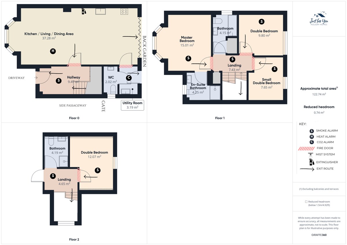 Accommodation: Four bedroom house set over three levels: Sleep 7 First Floor has three bedrooms 1 x King Double with en-suite shower room, 1 x double and 1 x small 4ft double. Family bathroom with bath and shower over.