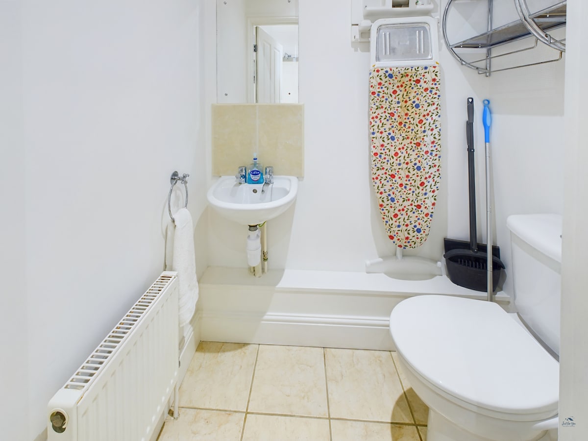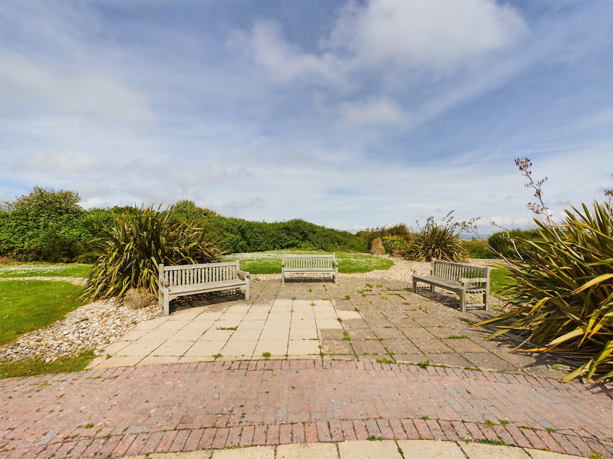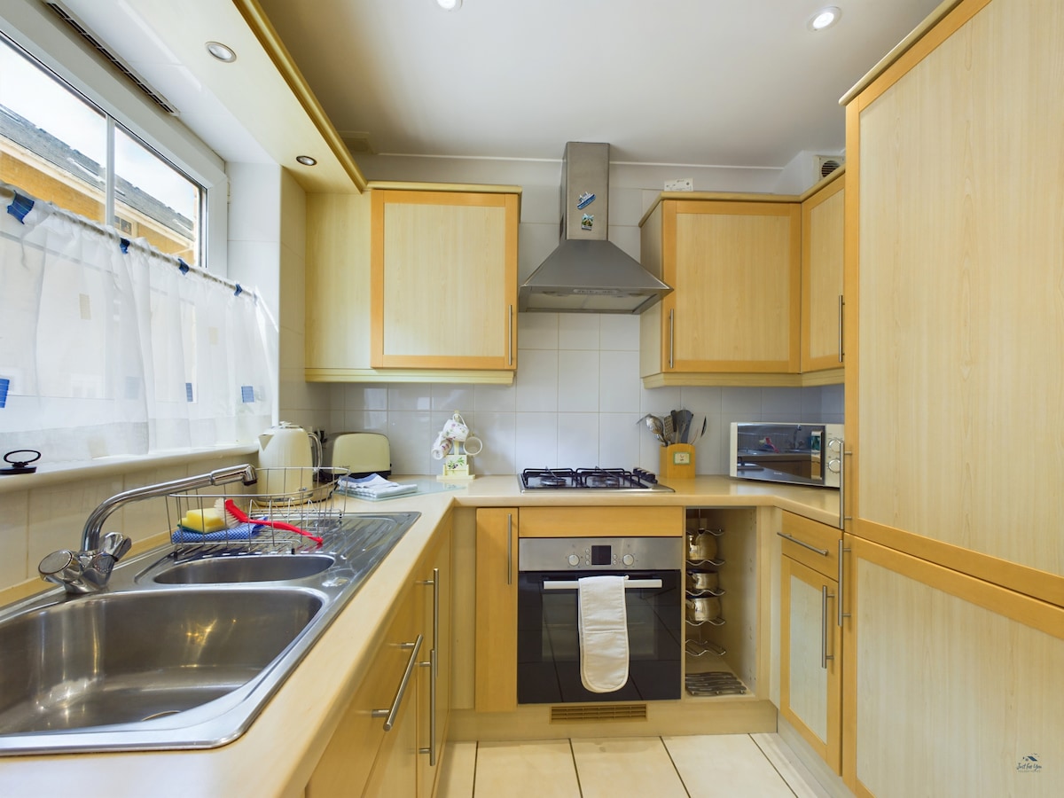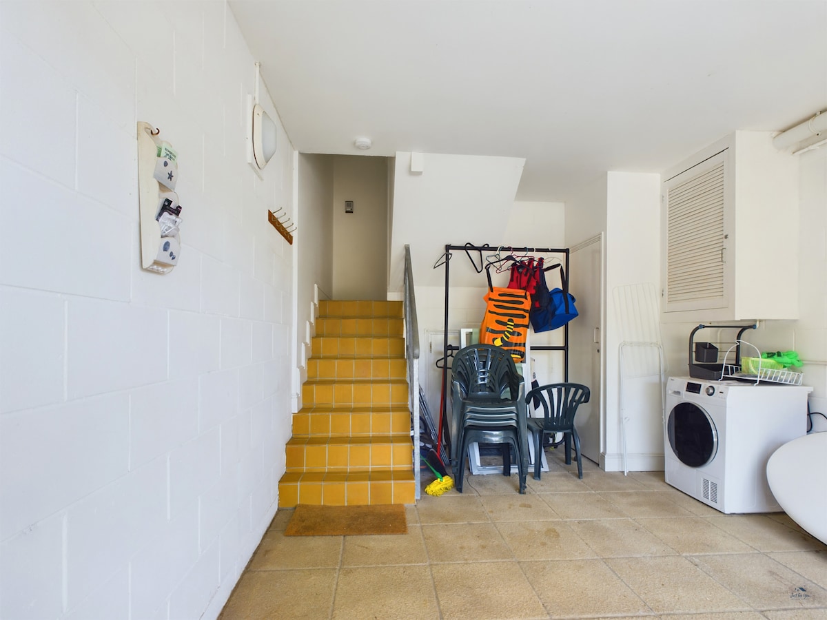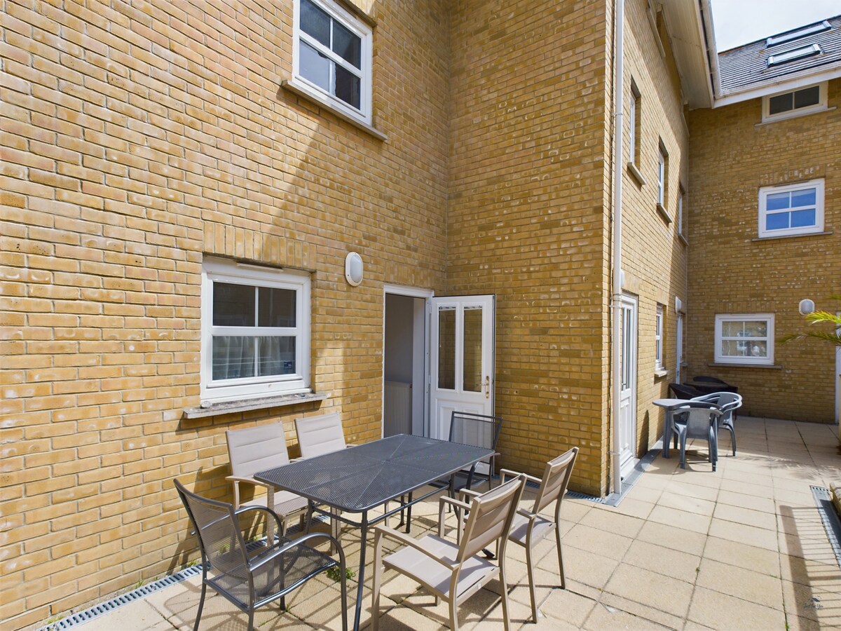 Climb the stairs to the ground floor hallway, where a convenient cloakroom awaits the dusting of sandy feet. Continue through to the thoughtfully designed kitchen/dining room that’s flooded with light, creating a welcoming and comfortable space for preparing meals with an integrated hob / oven, fridge freezer, dishwasher and washing machine. Spend evenings in the communal courtyard, just off the kitchen, and bask in the remainder of the day’s sun, or dine alfresco with outdoor furniture seating 6.