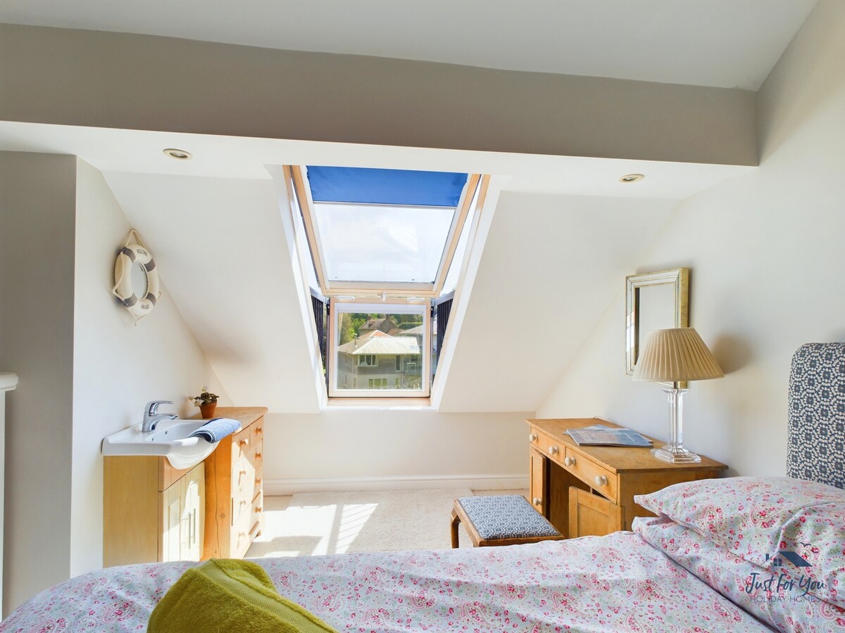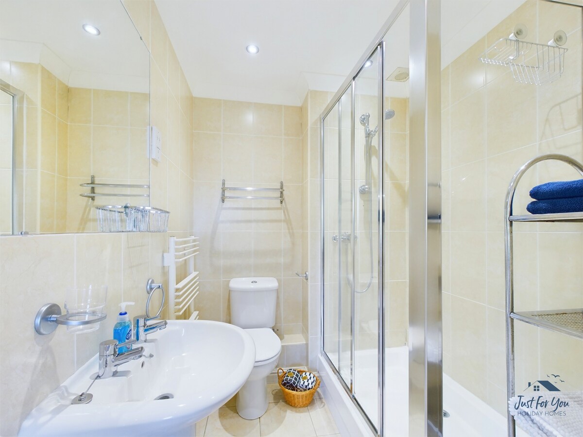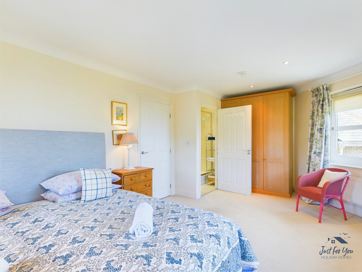 Bathed in light, the spacious master bedroom boasts a luxurious emperor king bed and stunning sea views. An en-suite shower offers privacy. Across the hall, the modern family bathroom features a shower over bath, perfect for those relaxing soaks after a windy walk along the beach.