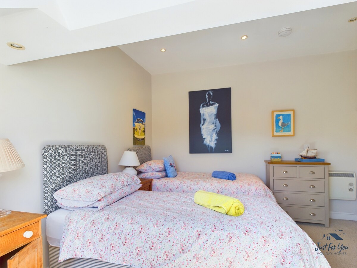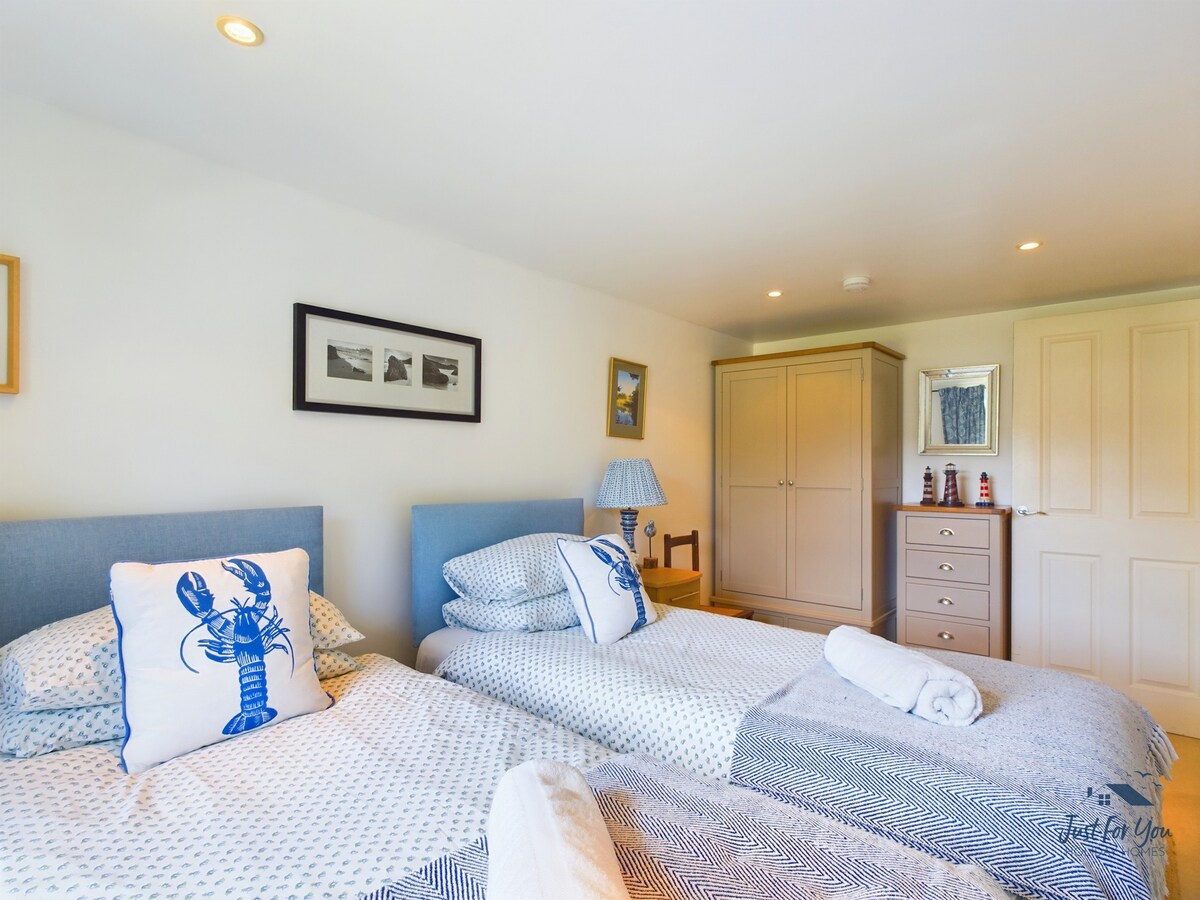 Nestled on the half-landing (second floor) is the first twin bedroom, tastefully decorated with nautical touches. A charming seaside atmosphere.