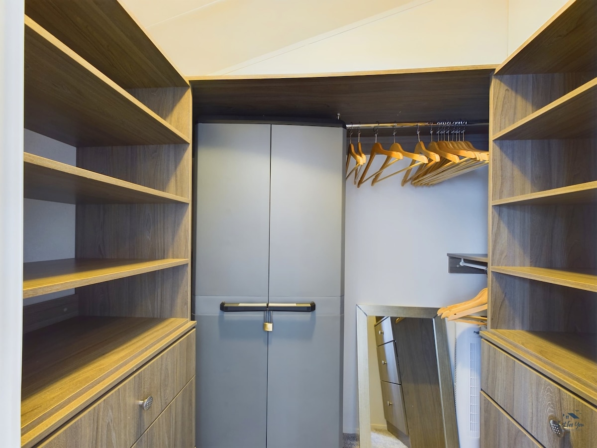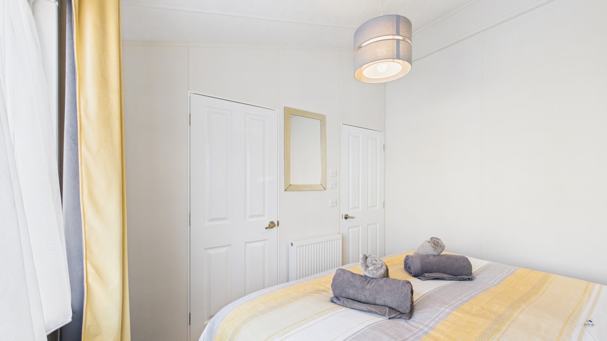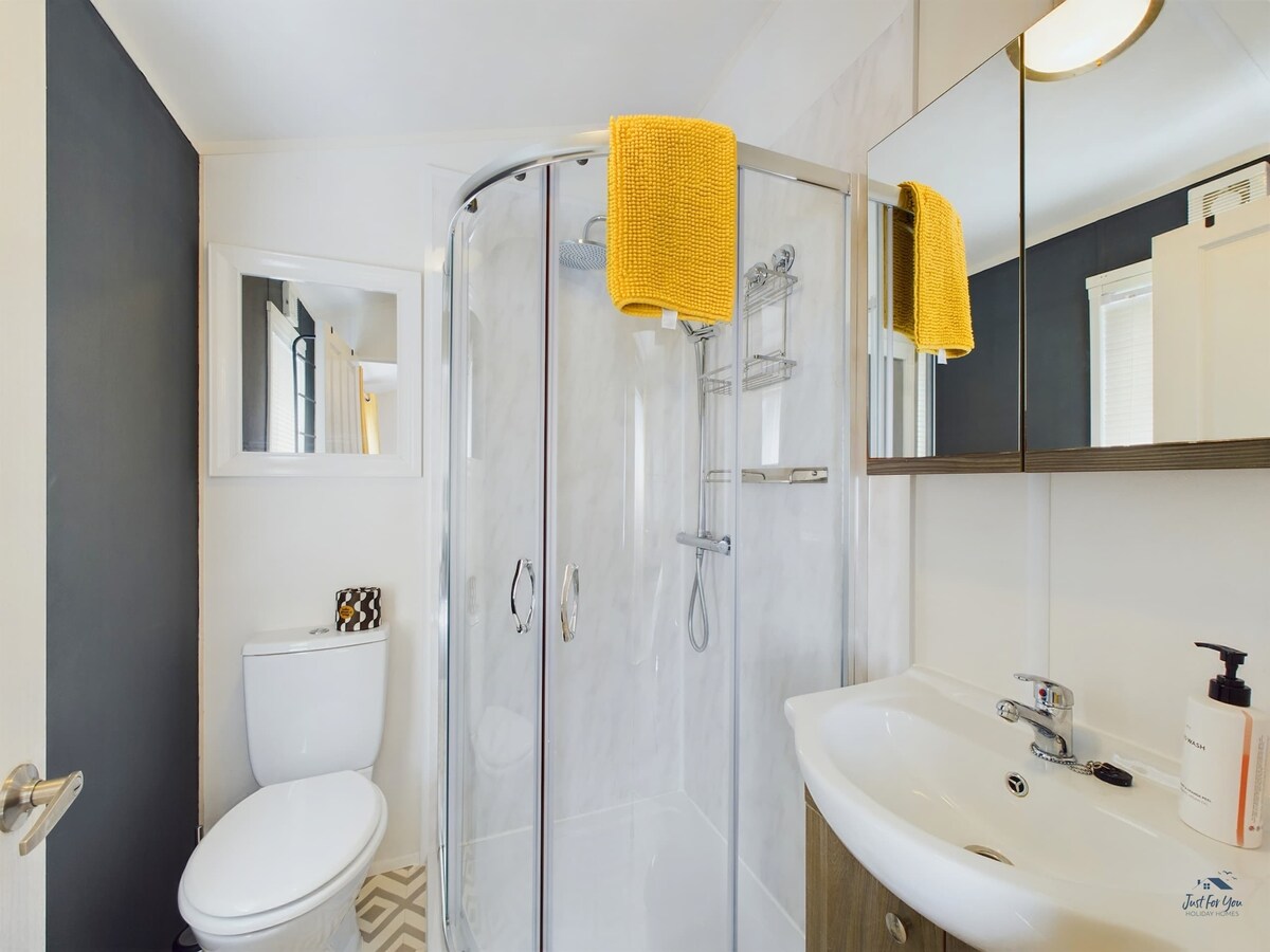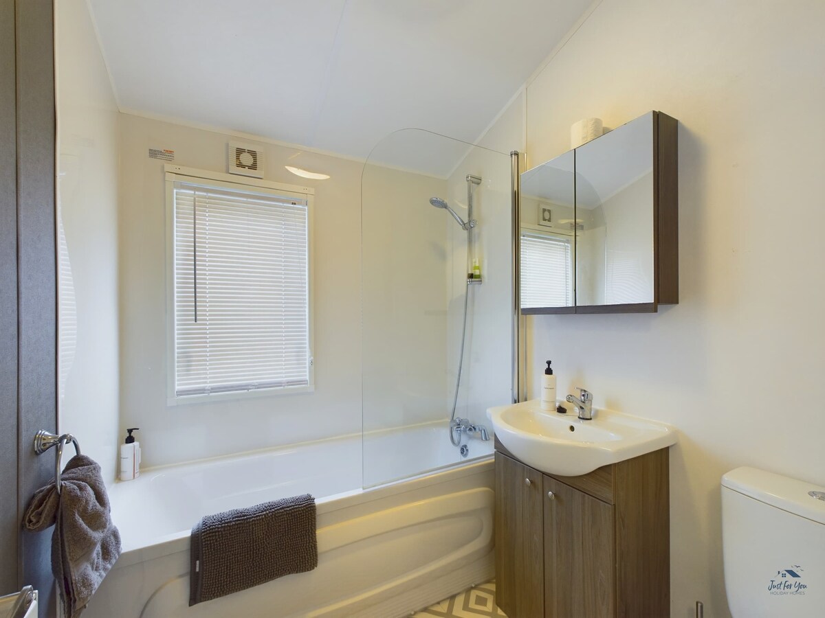 Within this beautiful holiday lodge, there is a spacious bright open plan kitchen, living and dining area which is smartly furnished and has all the home comforts you will want to relax and enjoy your holiday. There is a Smart Tv, bluetooth speaker with iPhone charger, books and games, 2 comfortable sofas set around an electric fireplace, and a dining table, perfect for coming together for family meals.