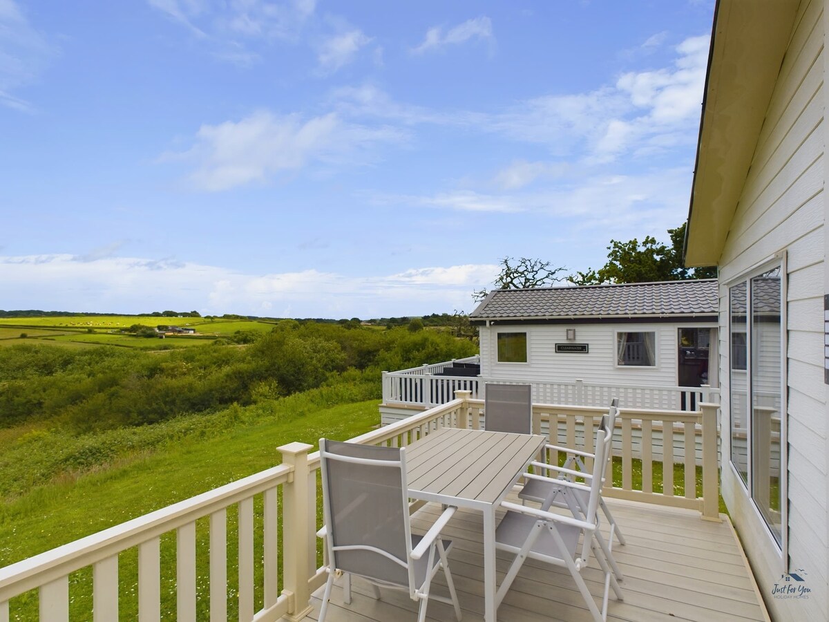 This peaceful holiday lodge is in an elevated position and offers restful far reaching views across woodland, rolling hills and overlooking the stunning Solent.