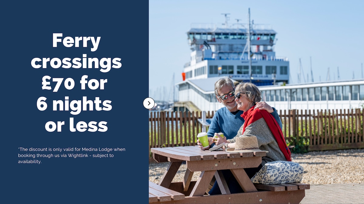 Book direct & save on Wightlink ferry tickets! Stay 7 nights and receive a free ferry crossing! Short stays 6 nights and under, ferry prices cost £70, please be aware the ferry companies only allow so many discounted tickets per crossing, so you need to secure your tickets. Travelling via Red Funnel? We offer a 25% discount on your ferry.
