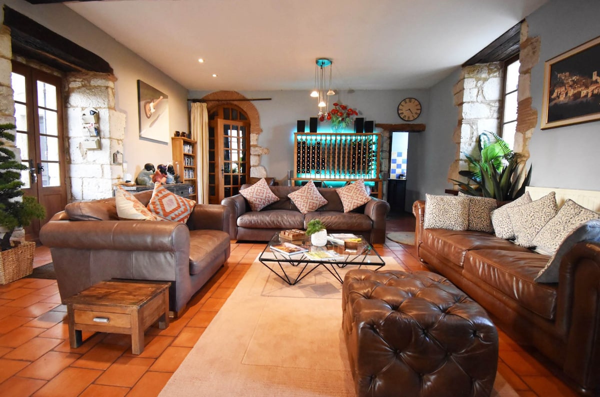 Discover Château de Sadillac, an exclusive 11th-century retreat near Bergerac. This historic château offers five bedrooms (two with en-suites), two kitchens, comfortable living and dining areas, and a cosy pool room. Wander through 7 hectares of grounds—including a golf course currently being renovated—enjoy the barbecue area, giant chess board, and children’s play area. Guests can fish in the lake or relax by the swimming pool. Step into your haven at Château de Sadillac.