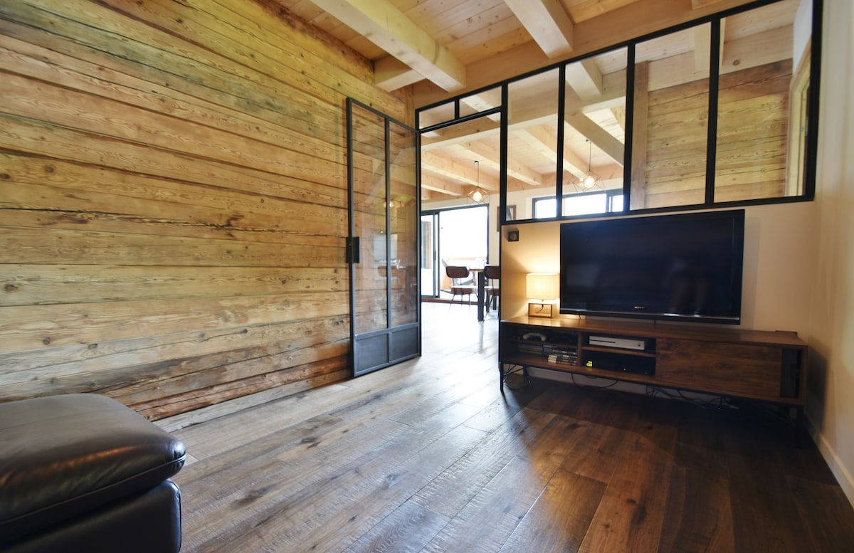 Cocoonr offers this 205m² flat for rent in Saint-Jean-de-Sixt, in a fully renovated chalet with a modern loft feel in keeping with the style of the region. It comprises a large living area with dining room, lounge, separate TV room, study, 4 bedrooms and 3 bathrooms. It sleeps 9 very comfortably (ideally 2 families). Wifi, bed linen and towels included - we're waiting for you!