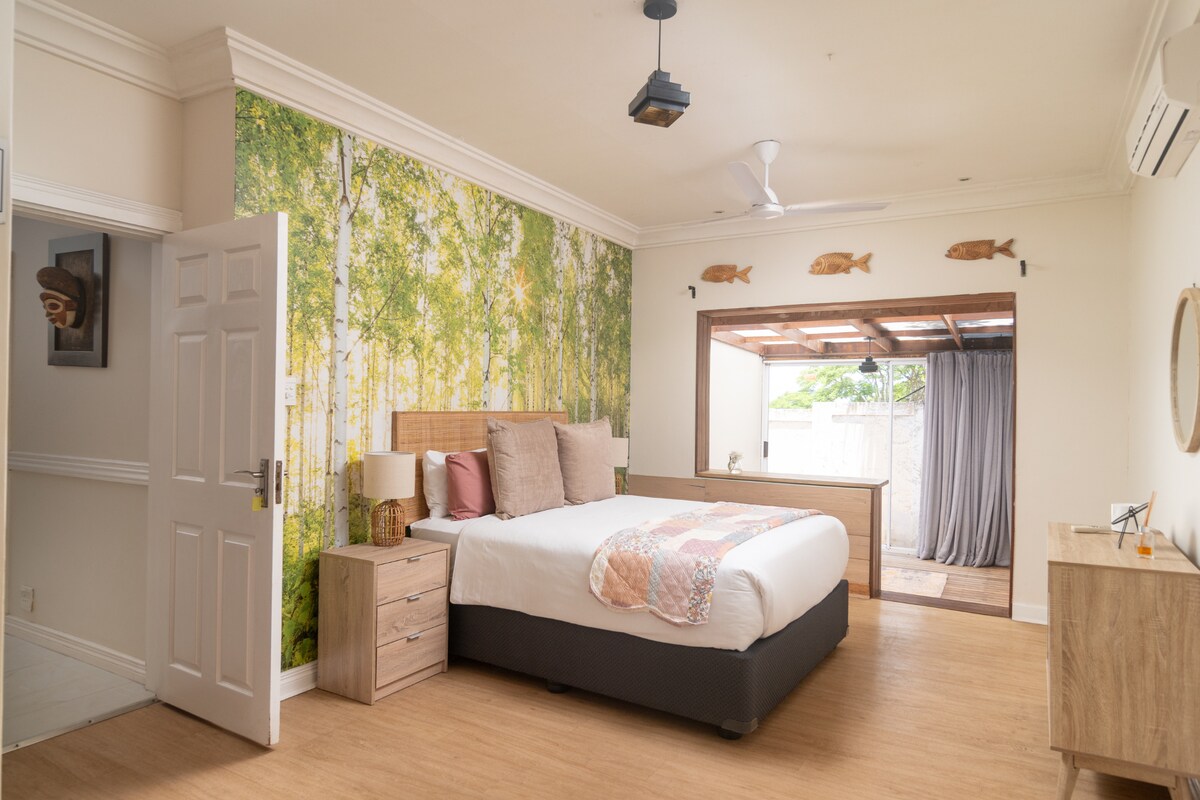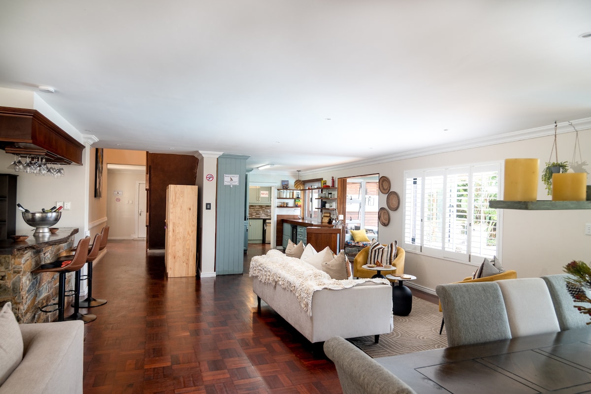 When it is time to unwind indoors, two Smart TVs with streaming services and DSTV are ready for movie nights or catching up on your favourite shows. Air conditioning and ceiling fans keep the home cool, while fast WiFi keeps you connected when needed. A washer and dryer add extra convenience for longer stays.