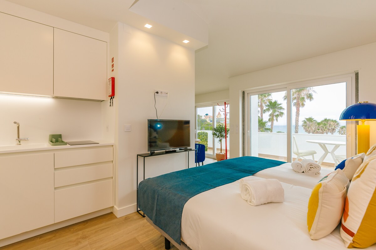 Welcome to our exquisite beachfront studio in the heart of Estoril, where contemporary design meets the serene beauty of the Atlantic Ocean. Perfectly positioned on the coastline, this stylish retreat offers unparalleled views and relaxation.
