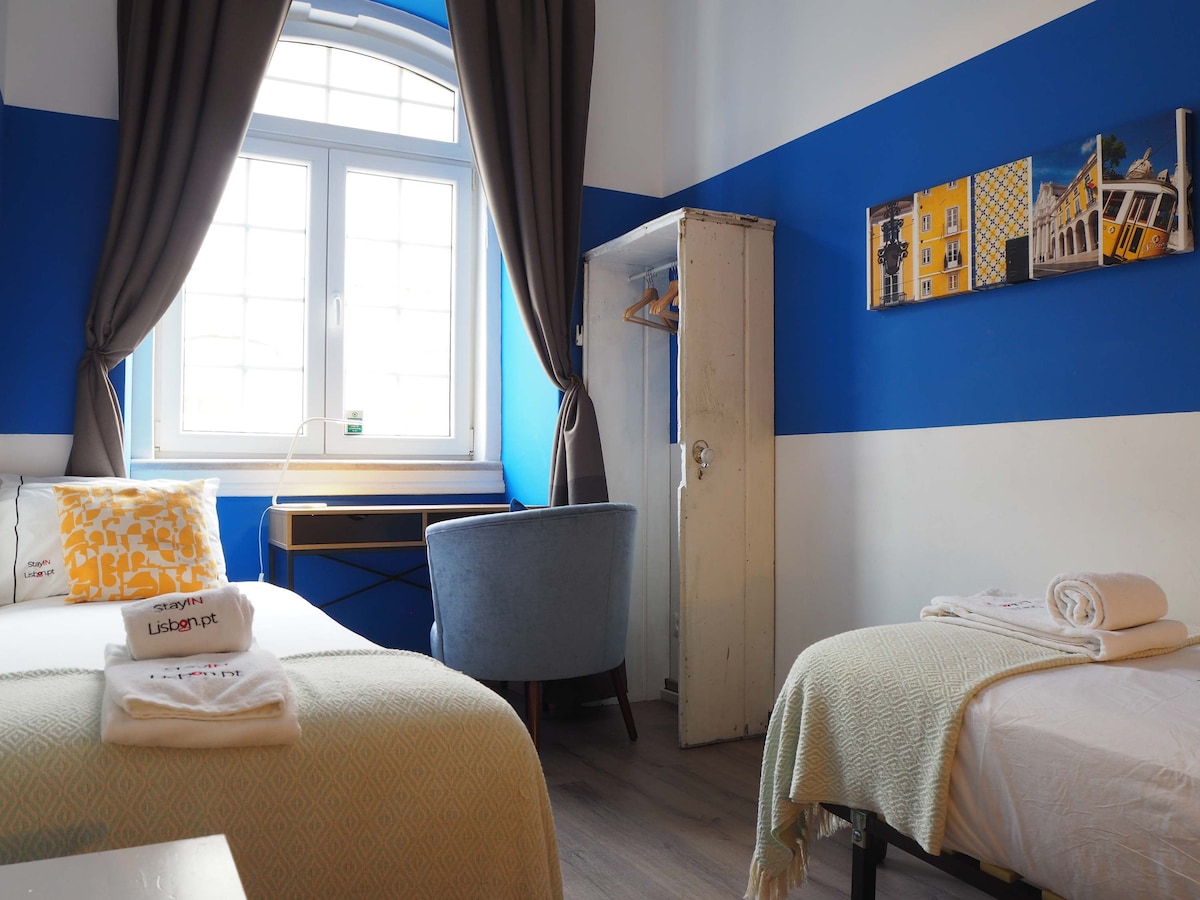 • 📍 Central Location & Night-Time Noise. This 3rd floor home (accessed both via lift or stairs) is located nearby a lively, central area close to bars, restaurants, and riverfront venues 🌆 As is typical of vibrant city centres, street activity and music may be heard at night, particularly in the blue twin bedroom, which faces the street. Guests who are sensitive to noise, or travelling with infants 👶, are advised to use the double bedroom or orange twin bedroom, which are quieter and preferred by families. Earplugs are provided for adult guests 😌If you require a completely quiet environment throughout the night in the entire home, this property and location may not be suitable.• 🧸 Family-Friendly Stay. Families with children of all ages are welcome 💛 Family amenities (baby cot, high chair, toys) are available on request. We previously lived in this apartment with our own children (5 and 1) for several months a year, including an infant, prior to relocating to Lisbon full-time 🏡 A public playground near Time Out Market is within walking distance 🛝