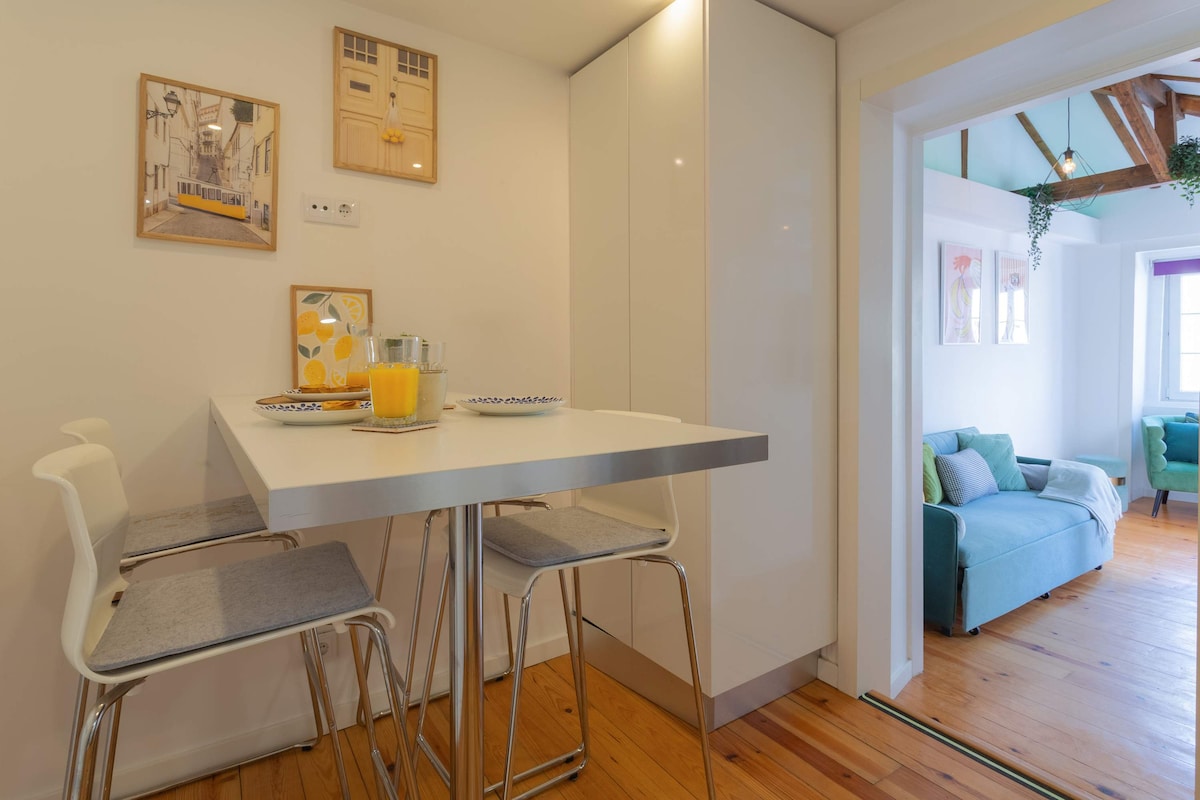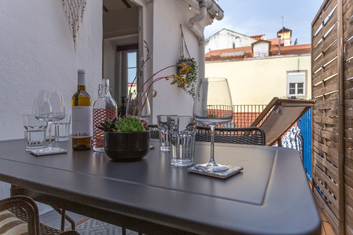 • Terrace: a rare outdoor space with views of Convento Carmo and a glimpse of tram 28 for relaxation, catching sun all day long including most winter days!