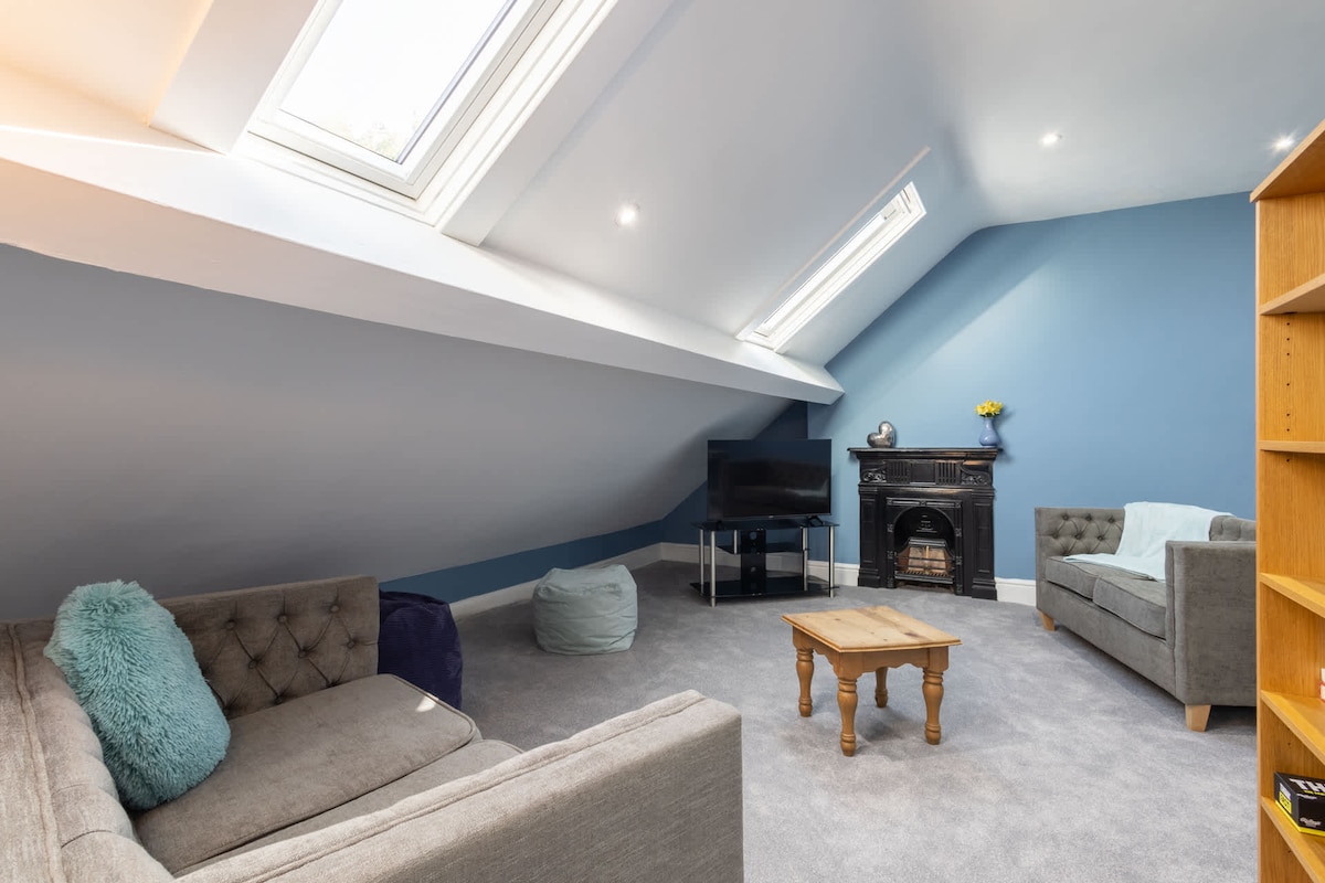 We travelled down from Scotland to celebrate my Nephews 21st Birthday. There was 12 of us in total ranging from 4 years old to 80 years old & was made up of a mixed group of family and a couple of my Nephews friends. Everyone of us absolutely loved the house & were in awe of how big it was & how amazing some of the rooms are. The place was absolutely spotless and had a great range of amenities. The only thing that let it down slightly was some of the bed frames are quite flimsy, but the mattresses weren't too bad at all. This would not put us off from returning as the house really is stunning inside & we really wanted to stay longer. We didn't venture out much, although some of the boys walked to local shops and said there was places for food & groceries close by. A few of our party used the hot tub which they all loved and is a great addition to the house. The only thing that would make it even better is a lift to cut out all those stairs🤣. Highly recommended by us all. Thanks again.