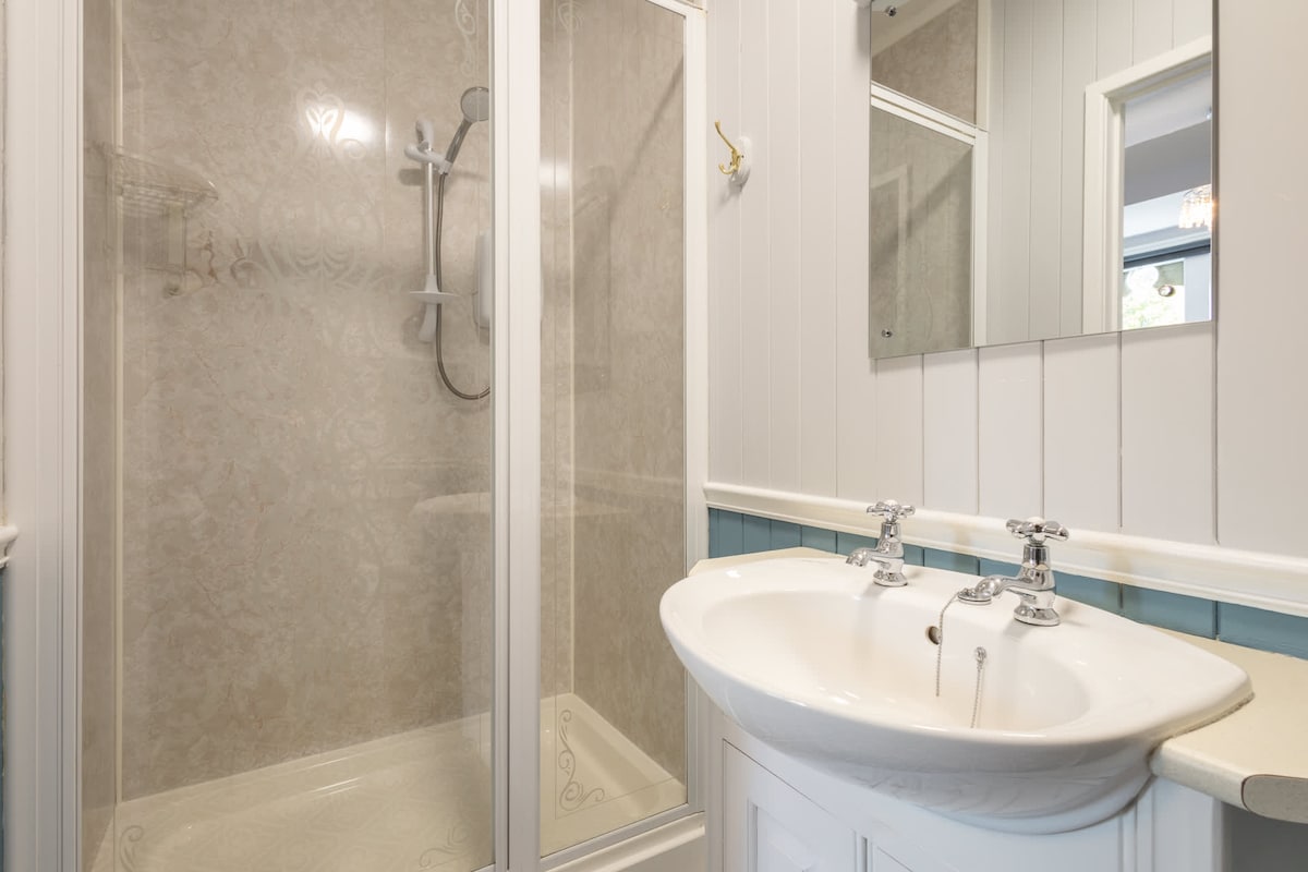 Chatsworth Townhouse sleeps 12 guests in total. Each bedroom has its own storage space, and ensuite bathroom with a sink, toilet, and shower, with two of the ensuites also boasting freestanding bathtubs.