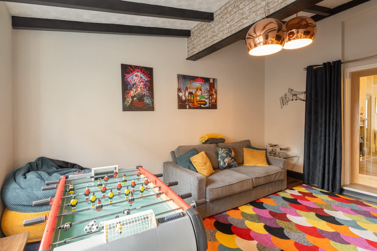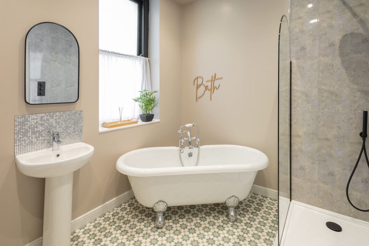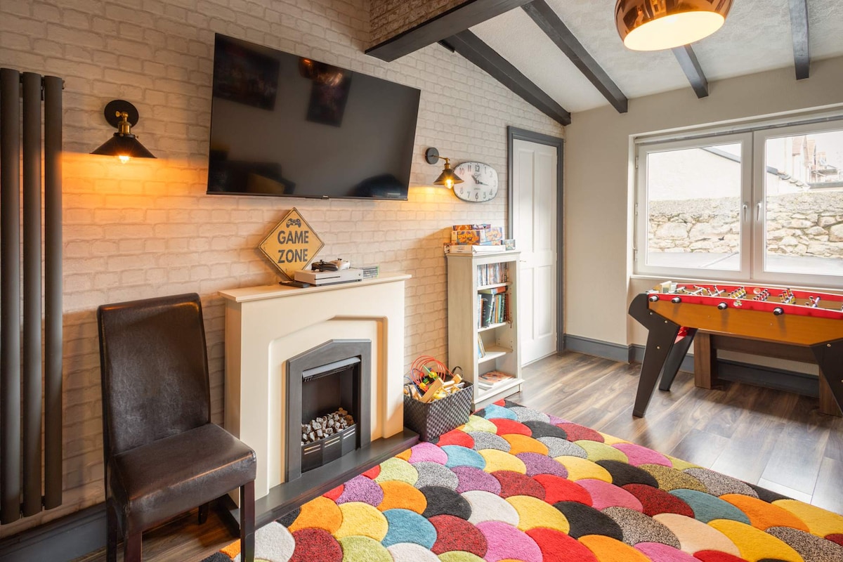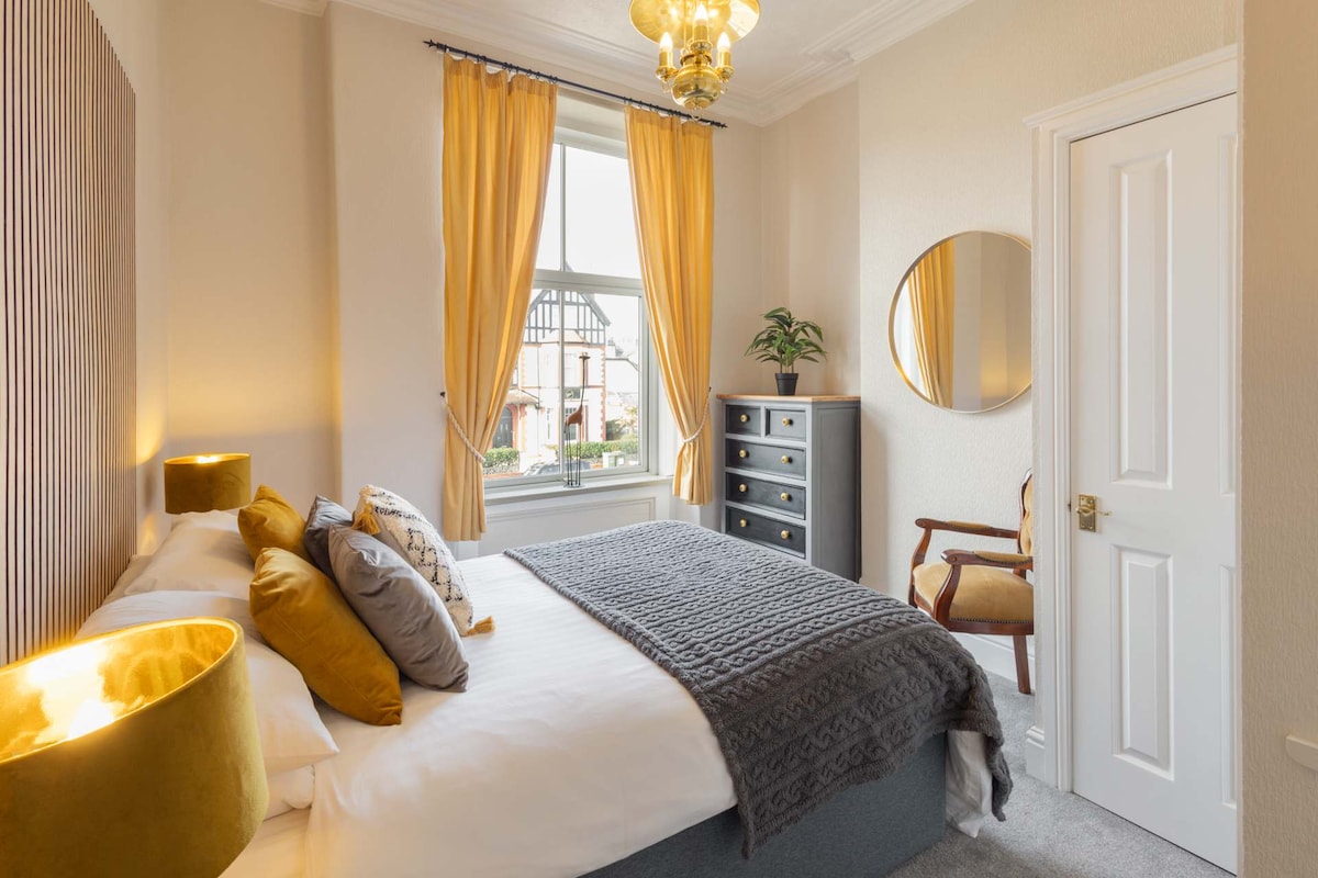 Enter this impressive new home-from-home, which boasts elegant interiors and is set over three floors. On the ground floor, you’ll find a fully equipped kitchen housing all the essentials to whip up a feast to feed your whole group and a dishwasher to help with the clean-up!Down the corridor from the kitchen is a lovely, well-presented living/dining room, a great spot for savouring your dinners together, enjoying family game nights, or even indulging in a movie marathon on the sleek, wall-mounted Smart TV!