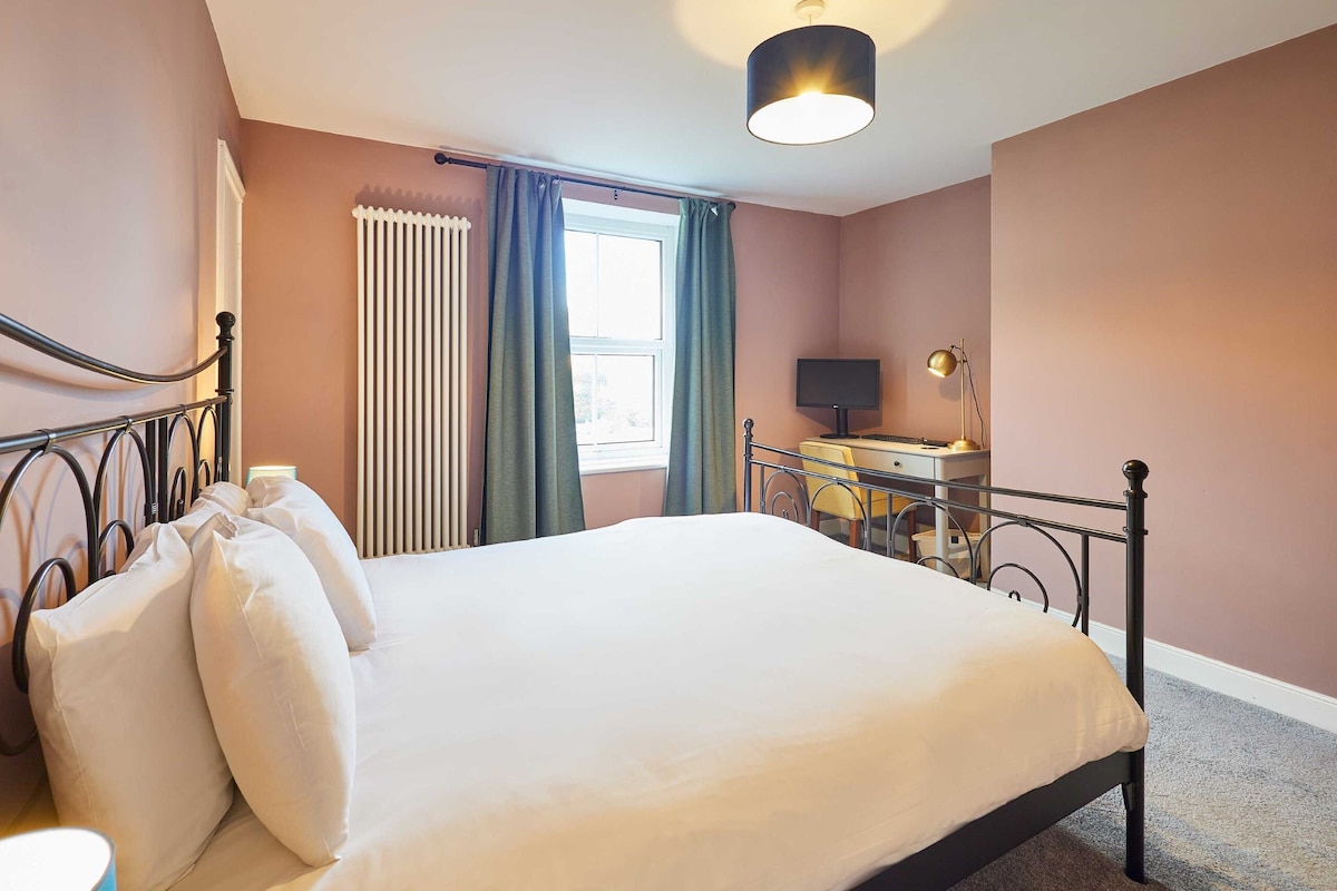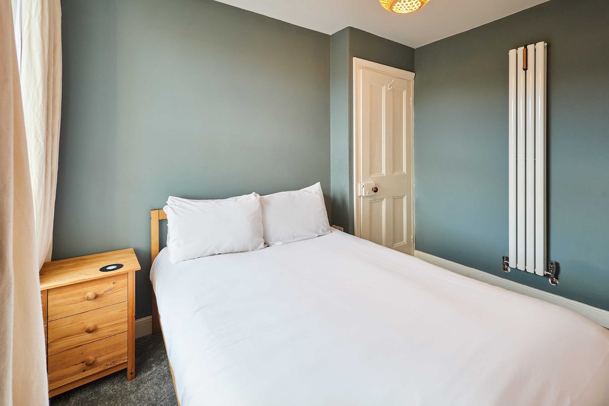 The well-proportioned master bedroom oozes charm and style and is finished to a high standard in warming tones with a beautiful, dressing table that doubles up as a workspace and views over the quiet street below. The second bedroom is equally cosy and features a full-size double bed. We also provide fresh white linen and towels and there’s ample storage for all your clothes and belongings too!