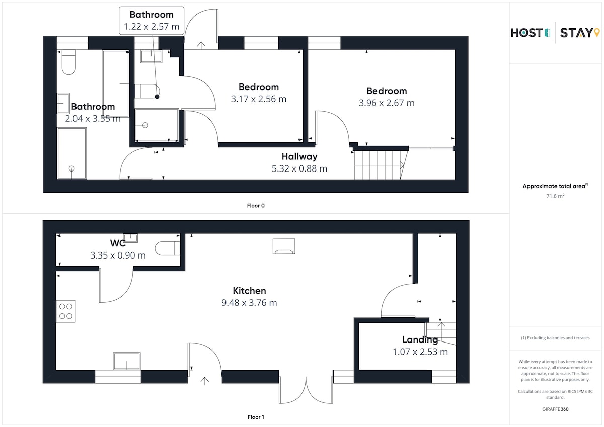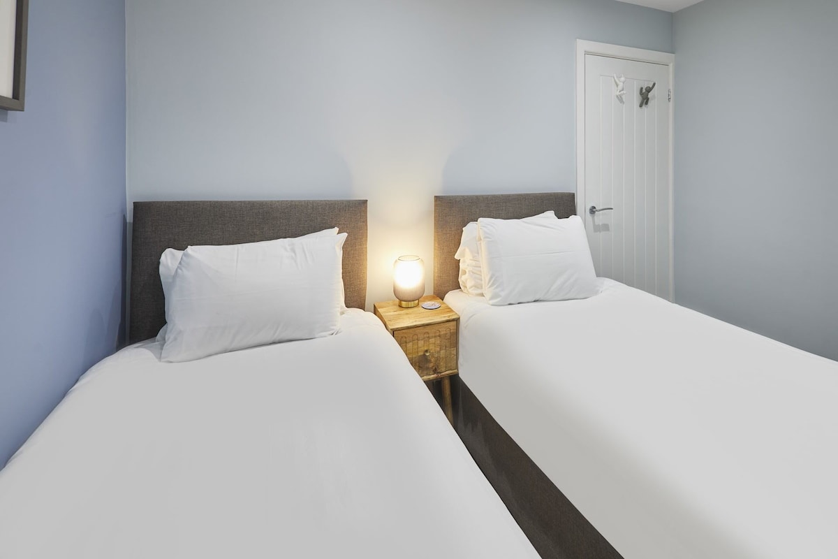 Walk down the stairs and you'll be greeted with two bedrooms. The first is a king sized bedroom and the second is a twin room. Both bedrooms have ample storage and are light and airy. The twin beds can also be set up as a super-king if requested by guests in advance. All duvets and pillows are provided.
