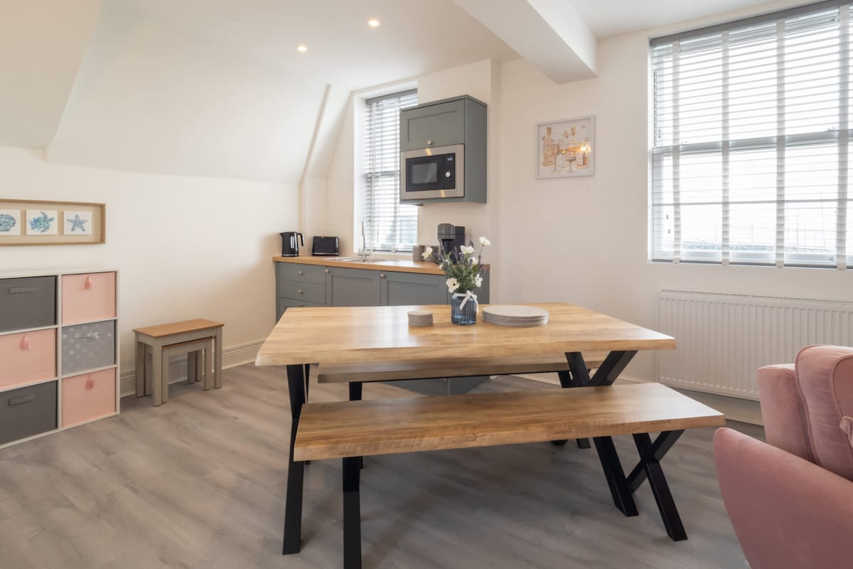 Nestled in the heart of Ramsgate, a two-minute walk from the Harbour, The Crow’s Nest is a family-friendly one-bed apartment furnished to a high standard. With panoramic views over the historic harbour, the duplex apartment exudes a minimalist yet stylish and modern look. Situated in the centre of town, The Crow’s Nest offers convenient access to Ramsgate’s best attractions, such as the sandy beach, along with the popular harbourside restaurants and bars on offer.