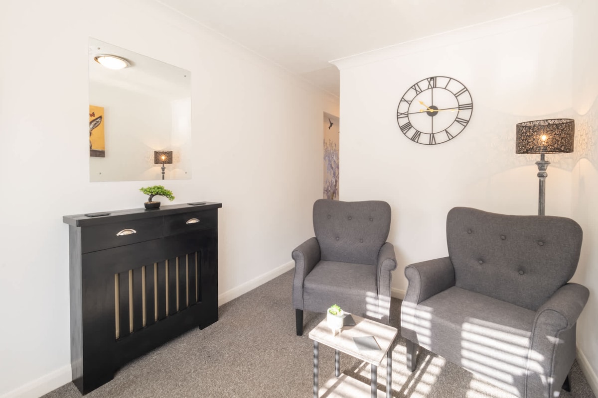The spacious and well-lit living area at St Martin’s Road includes a flat-screen TV with Sky including sports and movies, and two armchairs, providing the perfect spot to unwind.The fully equipped kitchen includes an oven with grill and hobs, microwave, and compact fridge/freezer. It’s stocked with a variety of utensils, pots, pans, and stylish cutlery, making meal preparation a breeze.