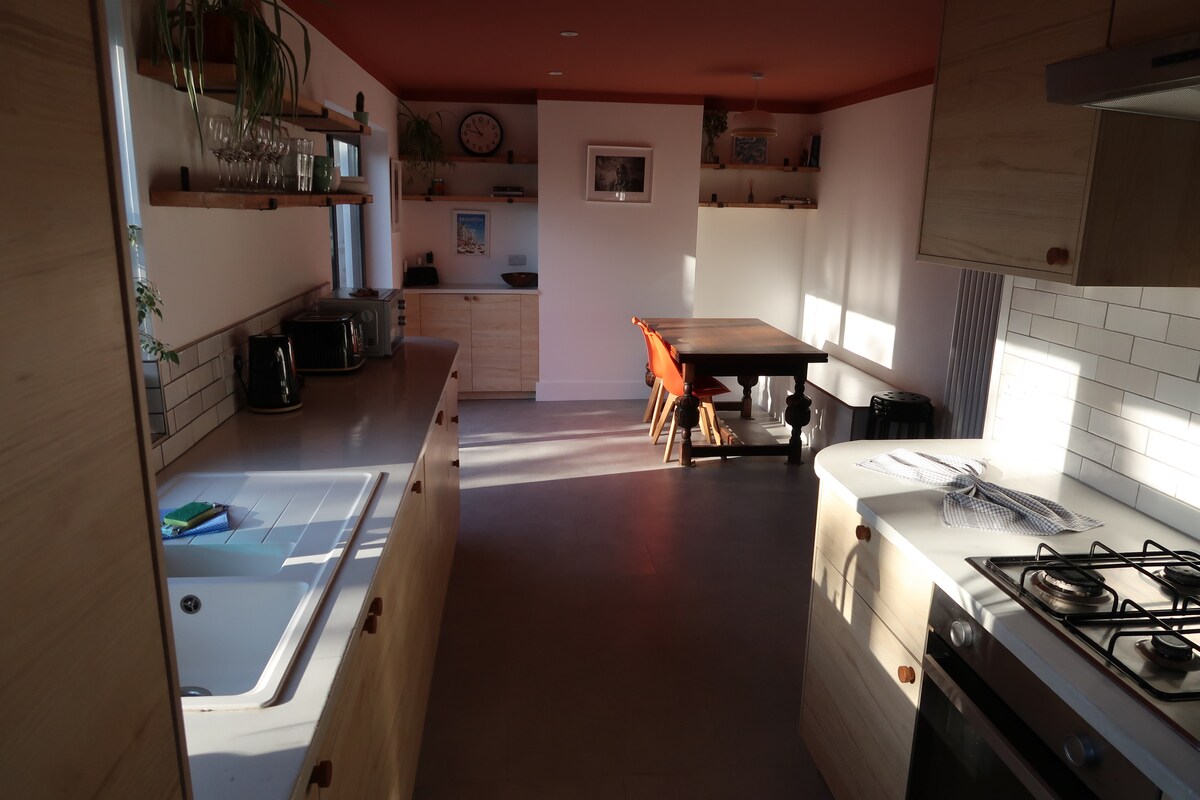 The kitchen has tonnes of natural daylight pouring in, opening out onto a lovely, large sunny garden and patio area. The fully equipped kitchen has a dishwasher, microwave, oven, coffee machine plus plenty of cookware, glassware, crockery and cutlery so you can easily cook up a brunch or lunch for everybody. In addition to this we offer complimentary tea and coffee, salt and pepper - so please help yourself. The utility room includes a washing machine.