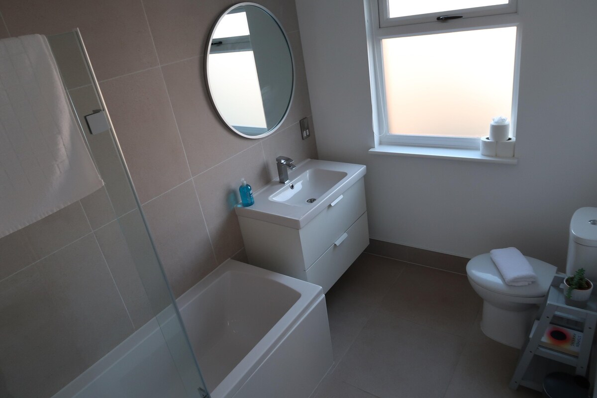 - On the first floor there is a full family bathroom, with a shower over bath, sink and toilet.