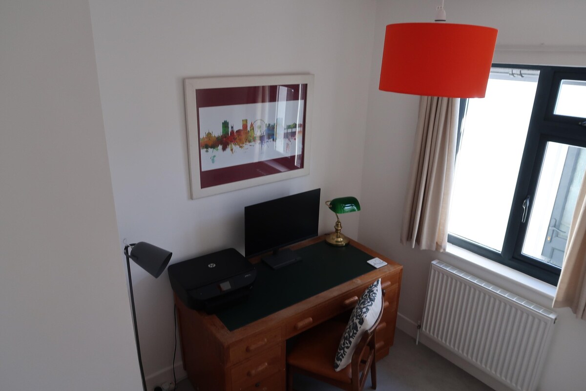 On the ground floor you’ll find the sociable and light living room set up with a comfortable sofa, making it a lovely space for chilling out, getting together for a few drinks or catching up on the events of the day. If you prefer, you can simply relax and watch a movie on the TV.