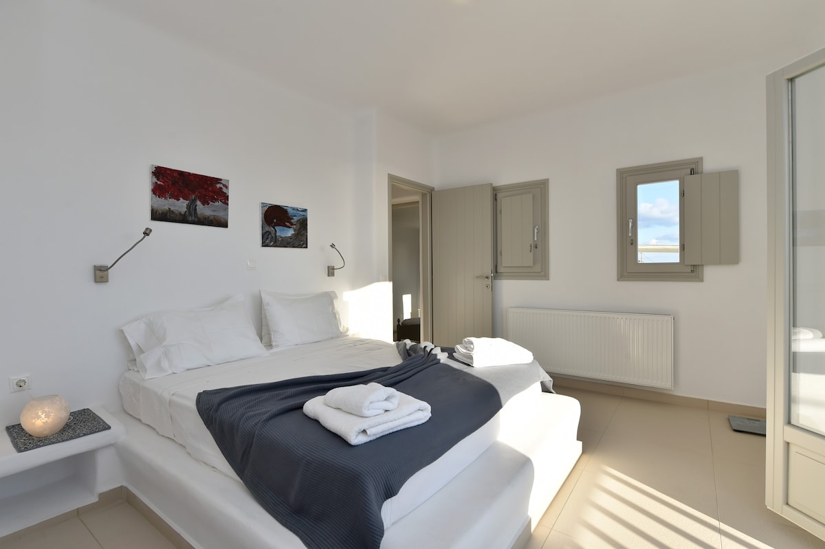 Fantastic property with breathtaking views. Waking up every morning and looking out to the eastern side of the island and the Aegean Sea with Naxos right across is priceless. We were concerned that the property did not have AC considering the heat in Greece, but the position of the property on the hill, combined with the island breeze of the Cyclades and the construction of the property- was never an issue. In fact - it felt better. Fantastic amenities for a week long stay for a group of 8. The pool is shared. Never an issue with the other guests. The location is great for those who want privacy and peace with amazing restaurants close by. Naousa is a 5-8 minutes by car with multiple supermarkets and bakeries very close. You will need a car as it is a steep hill and the roads are typical for a village. Beaches are a short drive away. We went to a different one every day with a drive from 8-16 minutes away. Would come back in a heartbeat if available.