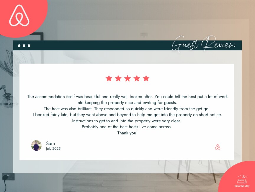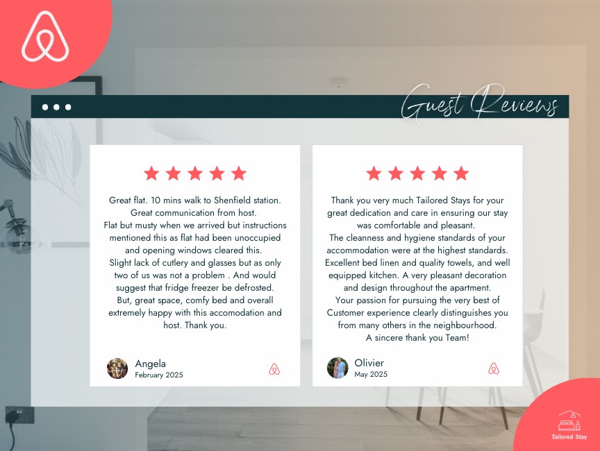 Thank you very much Tailored Stays for your great dedication and care in ensuring our stay was comfortable and pleasant. The cleanness and hygiene standards of your accommodation were at the highest standards. Excellent bed linen and quality towels, and well equipped kitchen. A very pleasant decoration and design throughout the apartment. Your passion for pursuing the very best of Customer experience clearly distinguishes you from many others in the neighbourhood. A sincere thank you Team!