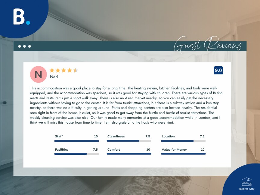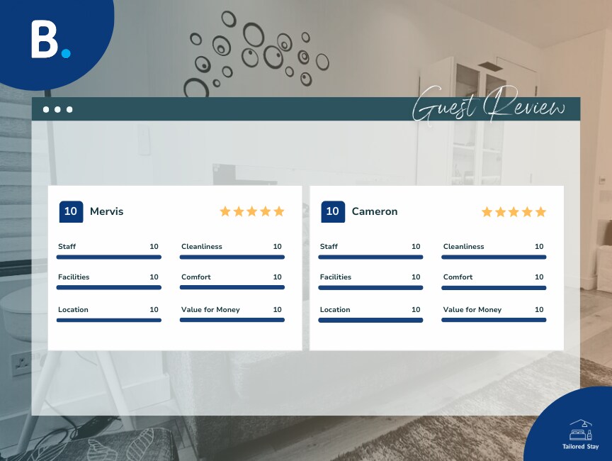 7. Guests must check out by 10am unless a late check out has been agreed in advance with Tailored Stay as this impacts on the property being ready for incoming guests. Guests that have not agreed a late check out will incur a charge of £50 for every 10 minutes that our housekeeping staff is delayed after 10am.