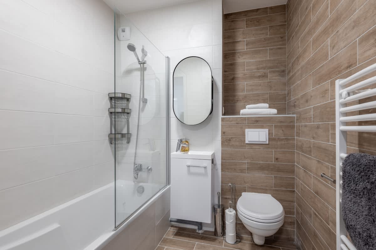 Spacious en-suite bathroom + additional modern family bathroom with WC