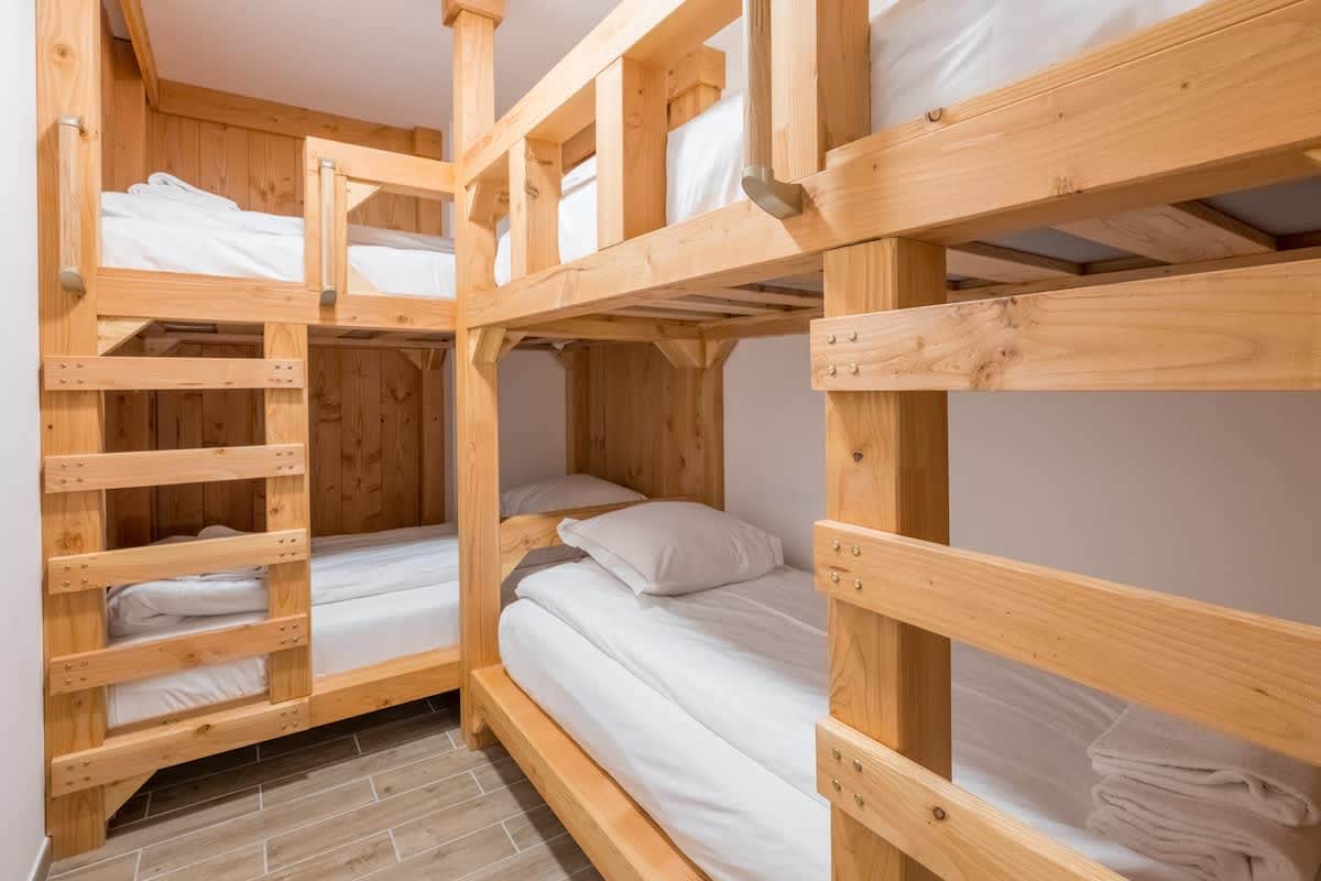 Bedroom 3: Two sets of full-size bunk beds (sleeps 4) — a cosy room, best suited for children.