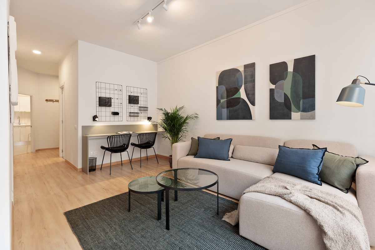 A fully furnished apartment designed to meet the expectations of any traveler visiting the city!The kitchen is fully equipped with a washing machine, dishwasher, and all the appliances you need to cook and prepare a delicious breakfast before heading out to explore the vibrant streets of the Ciudad Condal.