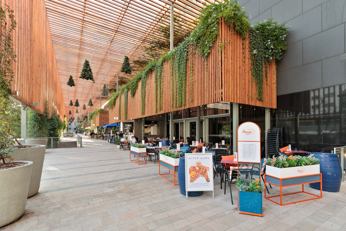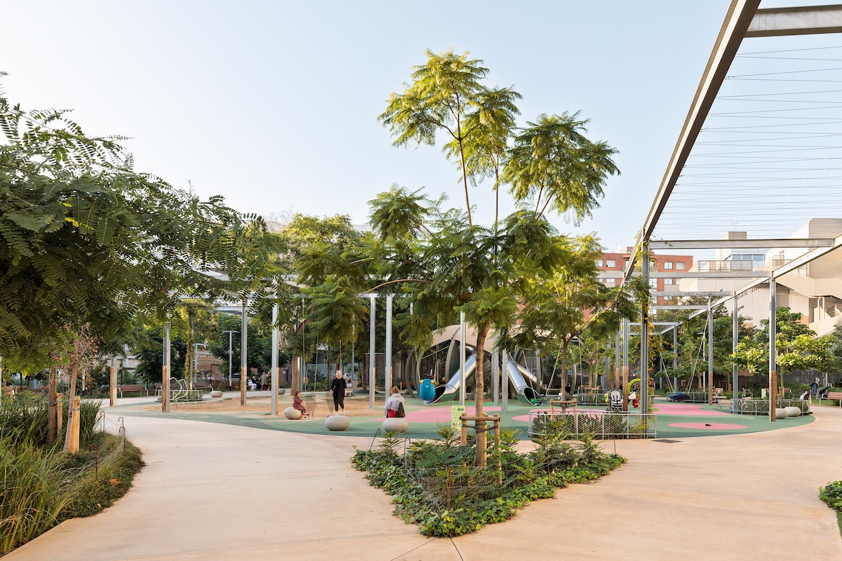 A few steps further, you’ll discover the large garden—a bright and cheerful space that adds a special touch to the apartment. It features a cozy chill-out zone as well as a dining area, perfect for enjoying meals outdoors.