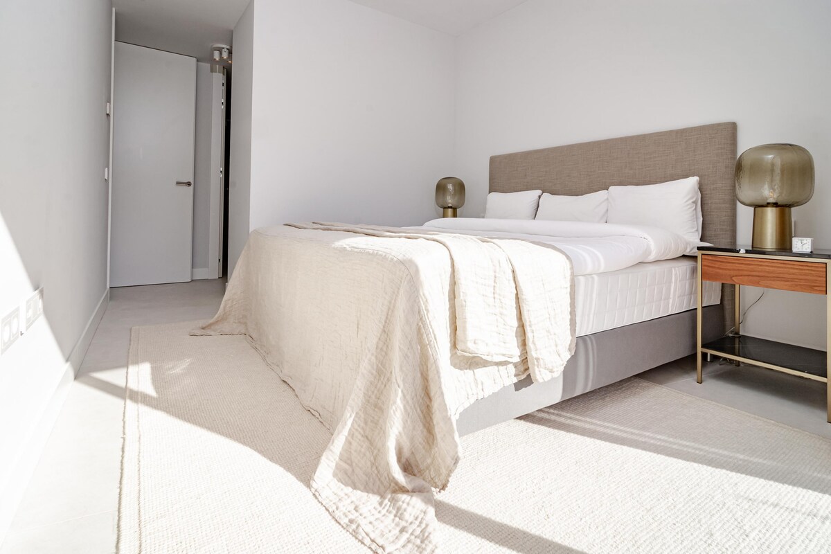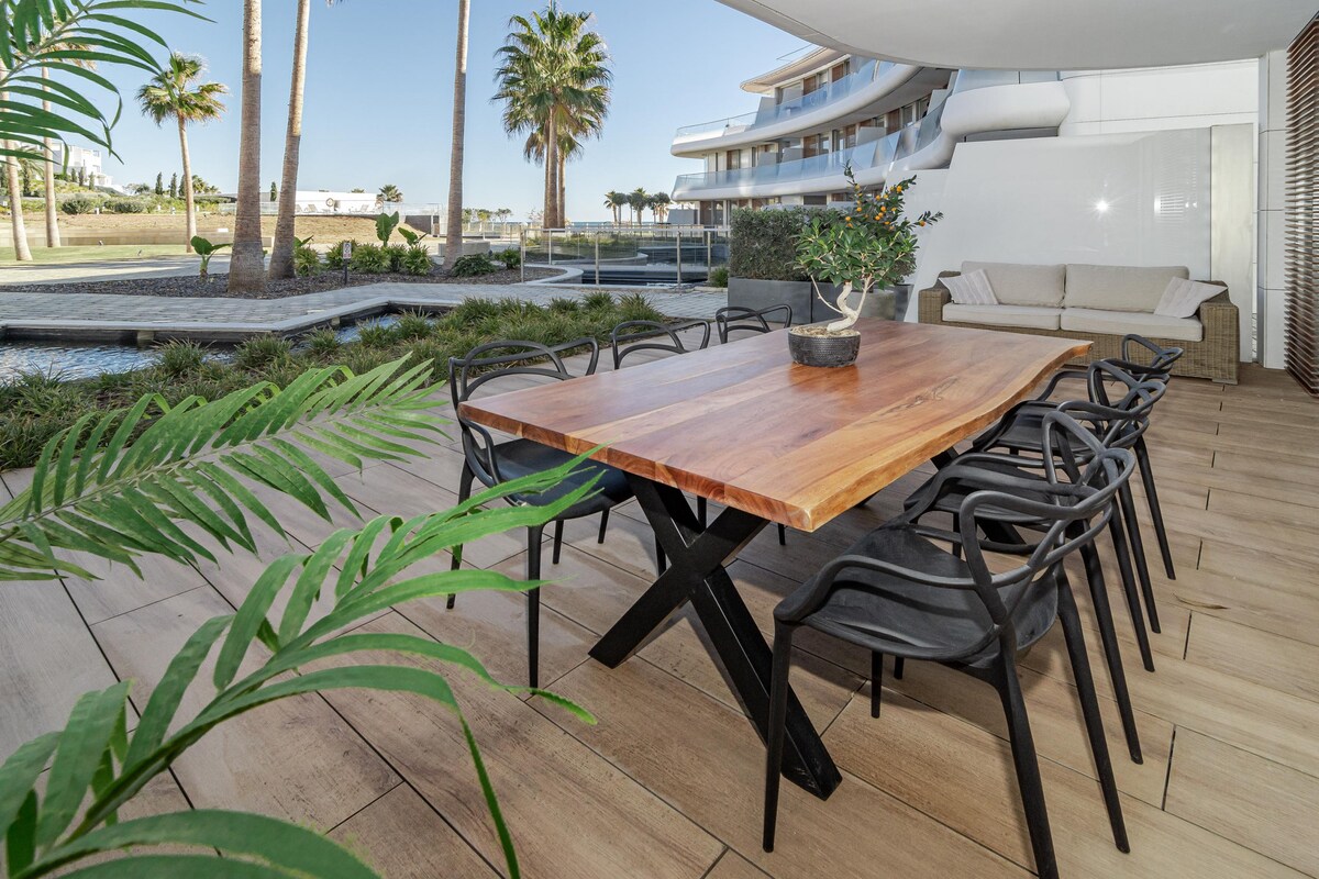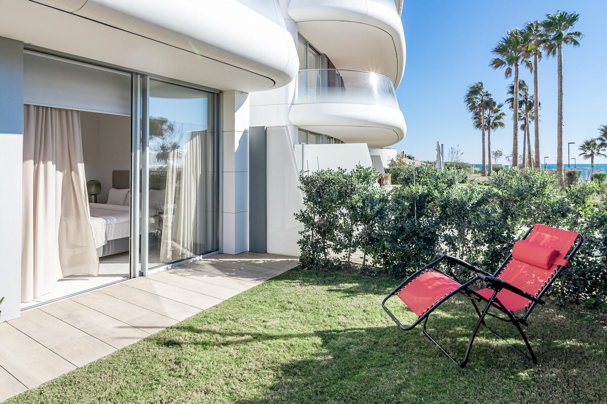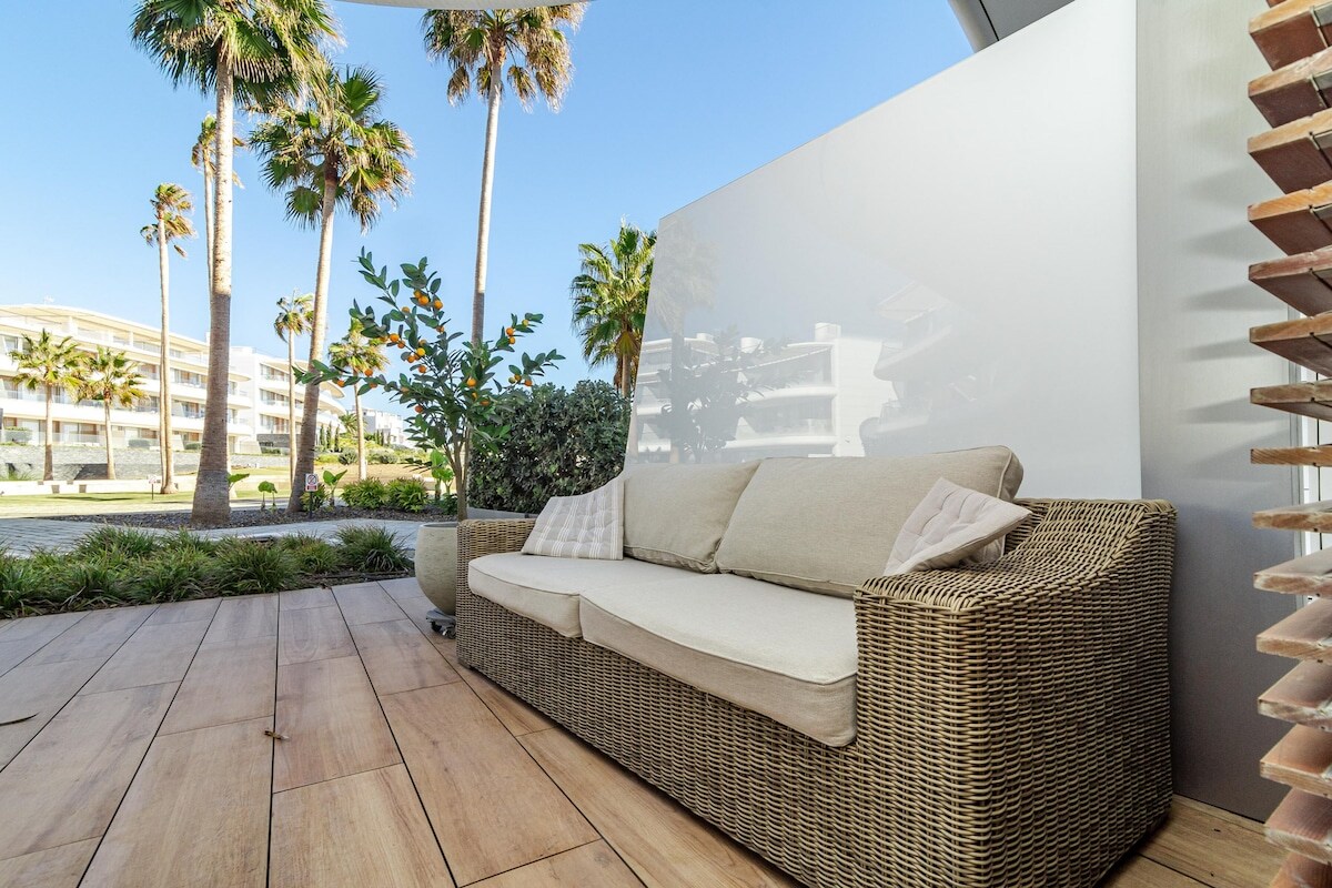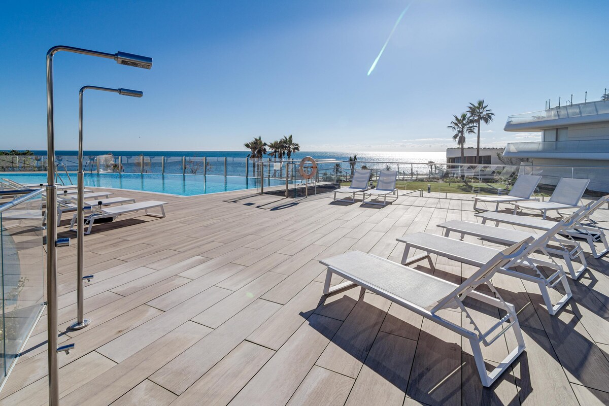 The apartment in Estepona has 3 bedrooms and has capacity for 6 people.The apartment is tastefully-furnished, is a new build, and is 110 m². The property is located right next to the beach. It has views of waterfront and the garden.