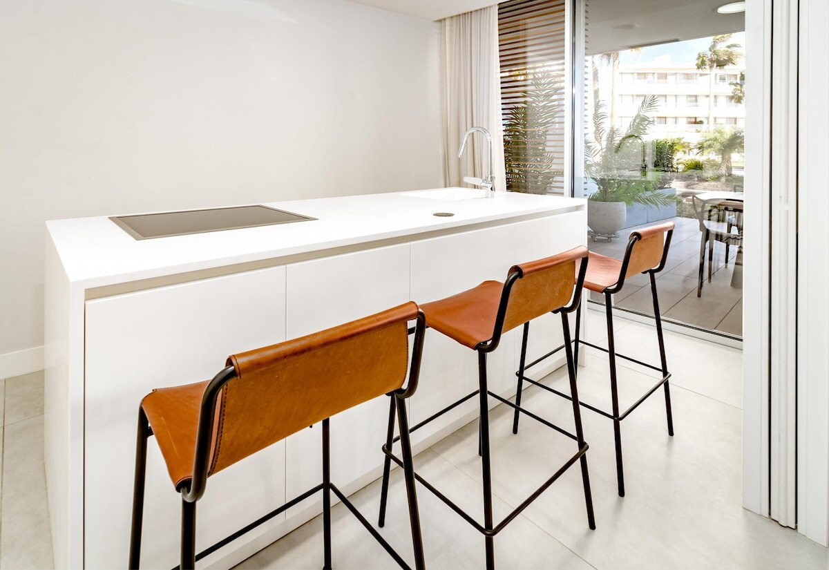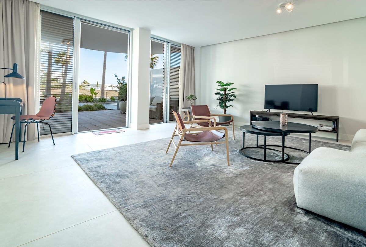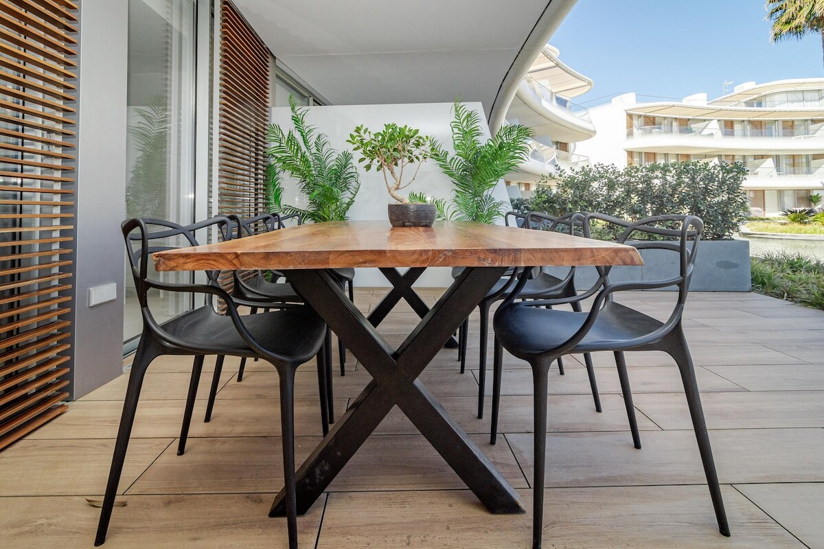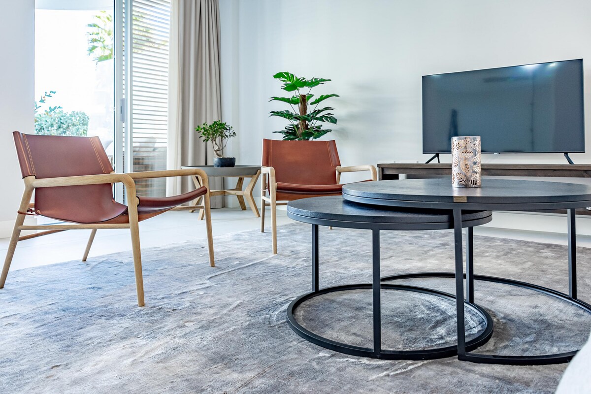 The apartment in Estepona has 3 bedrooms and has capacity for 6 people.The apartment is tastefully-furnished, is a new build, and is 110 m². The property is located right next to the beach. It has views of waterfront and the garden.
