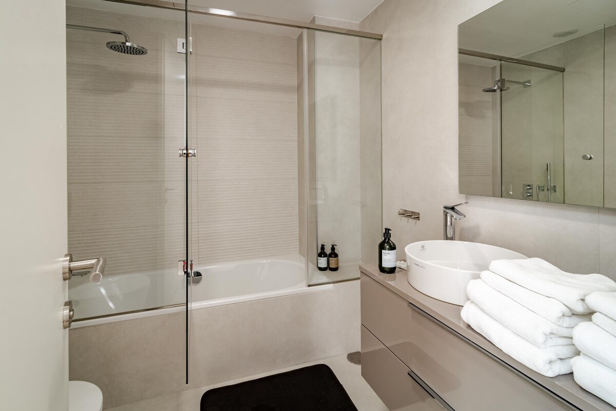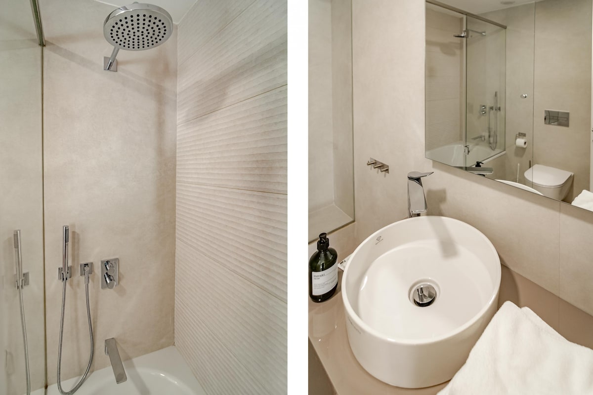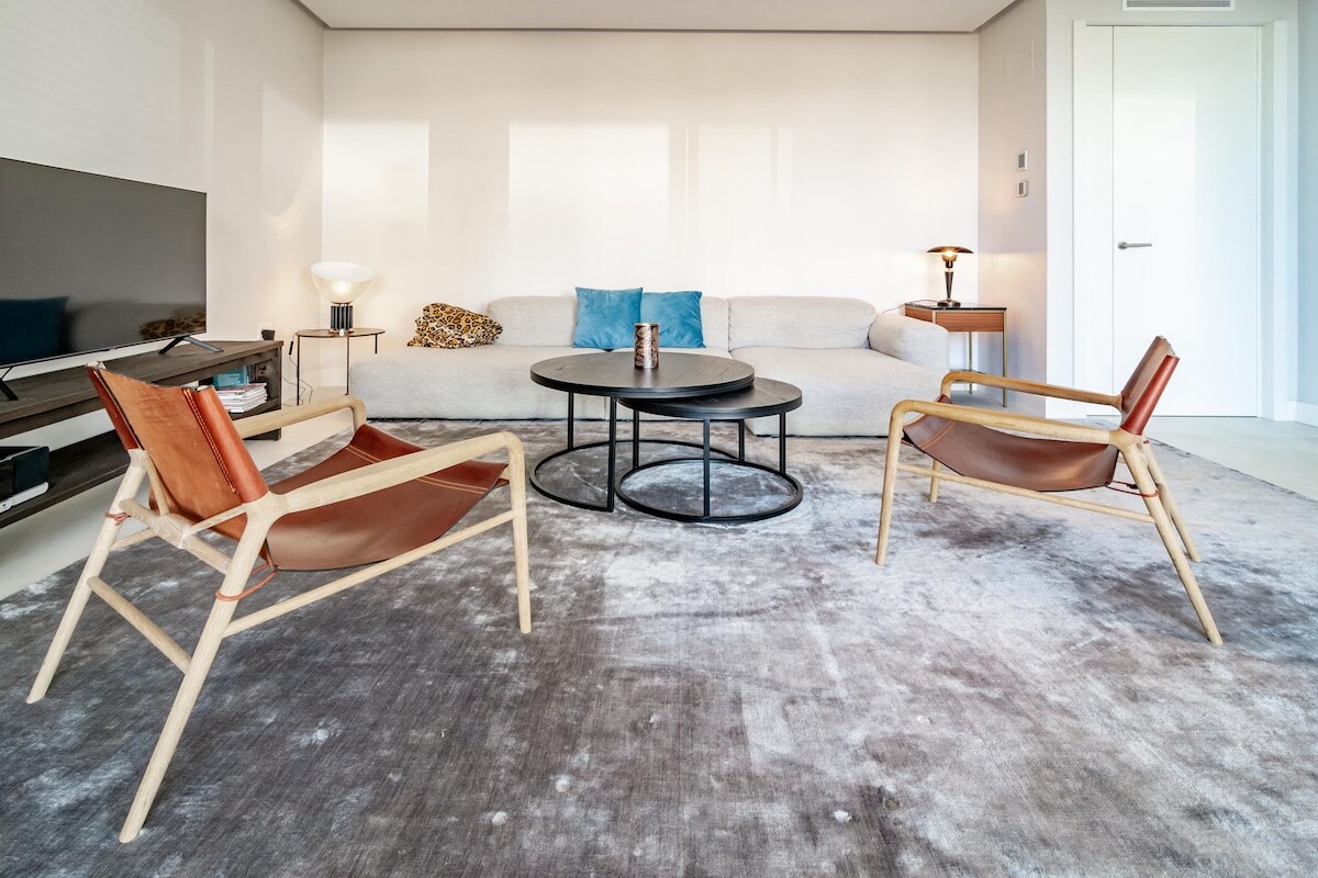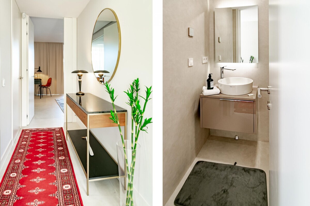 The apartment is tastefully-furnished, is a new build, and is 110 m².
