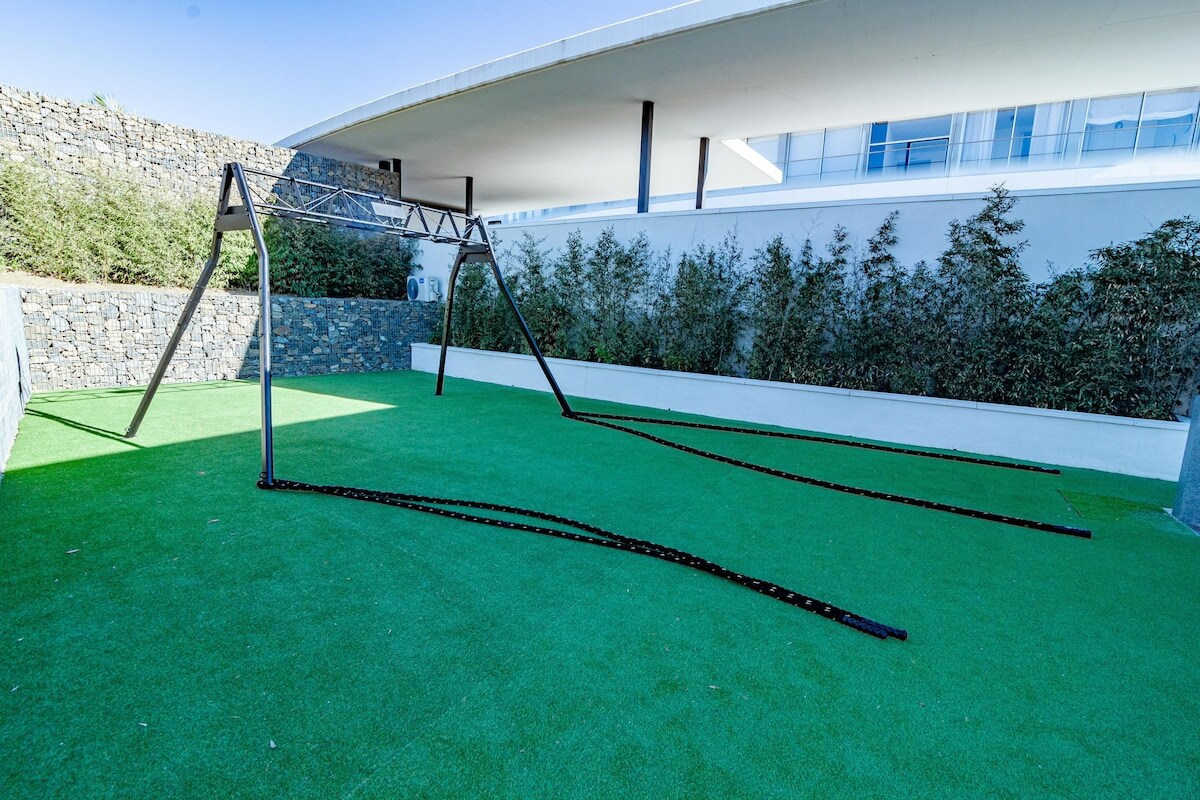 The accommodation is equipped with the following items: lift, garden, garden furniture, fenced garden, 20 m² terrace, iron, internet (Wi-Fi), hair dryer, balcony, childrens area, tennis court, paddle tennis court, gym / fitness centre, sauna, jacuzzi, indoor hot-tub, central heating, air-conditioned, communal+children's swimming pool, communal heated swimming pool, garage the same building, 1 Tv, tv satellite (Languages: Spanish, English, German).