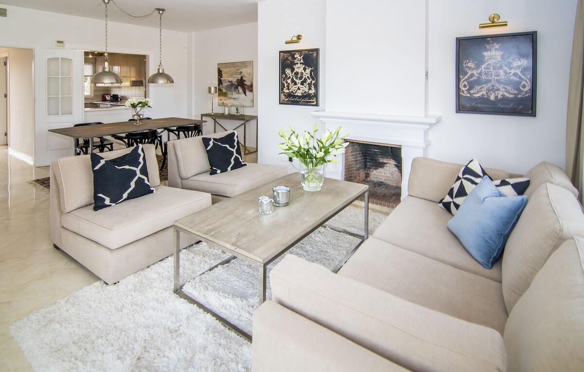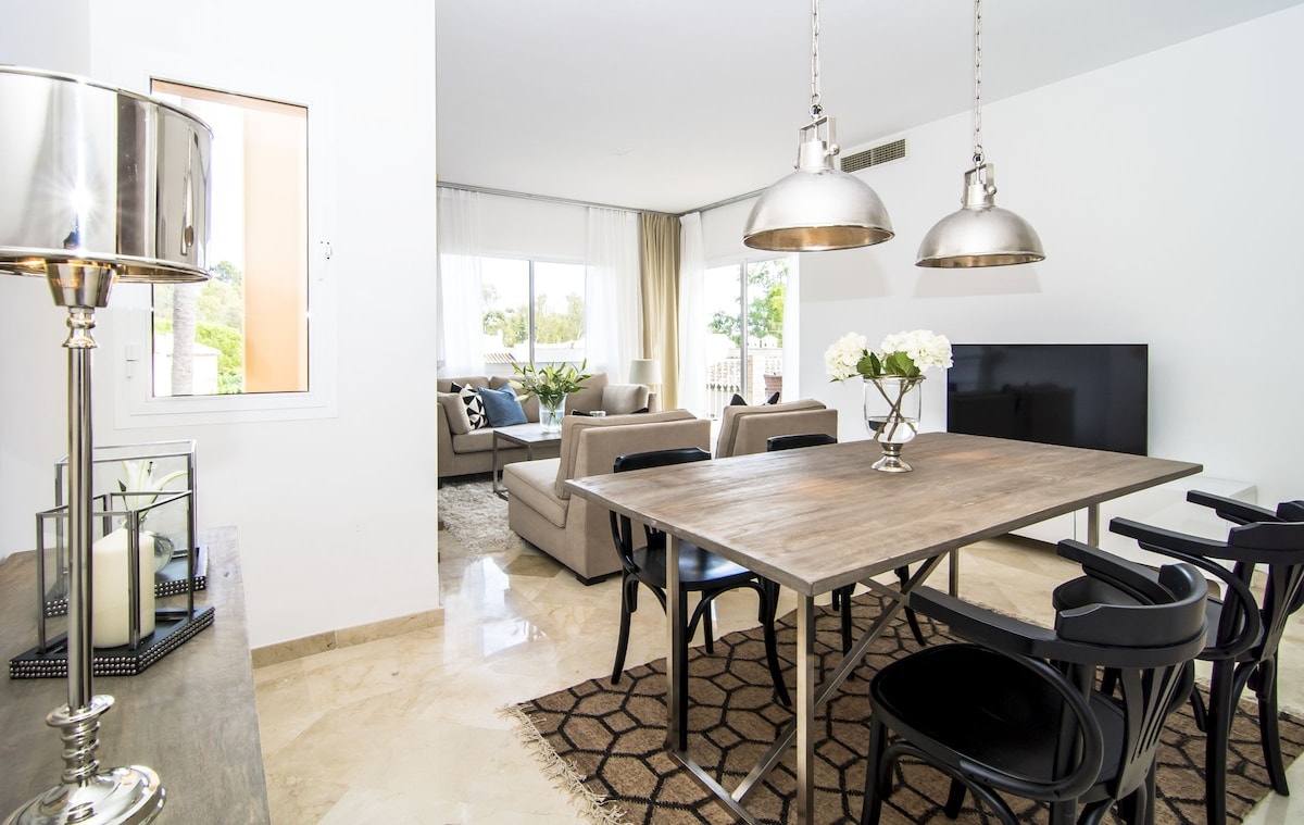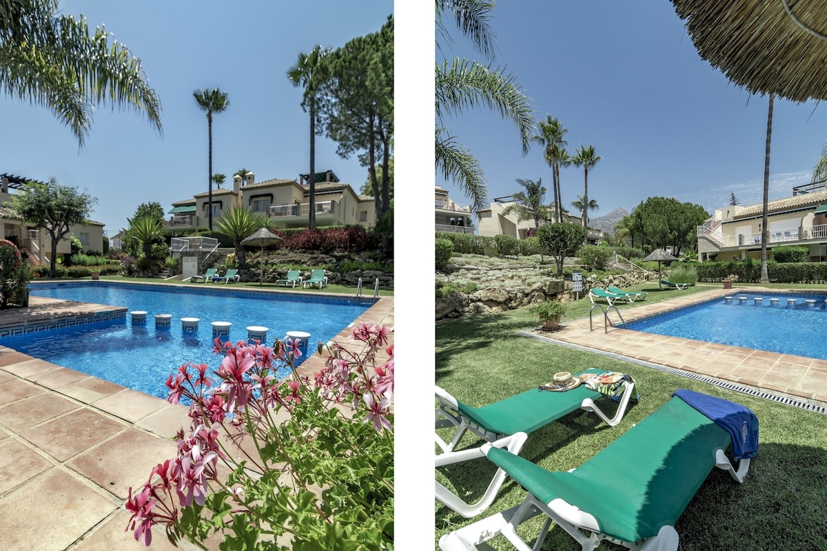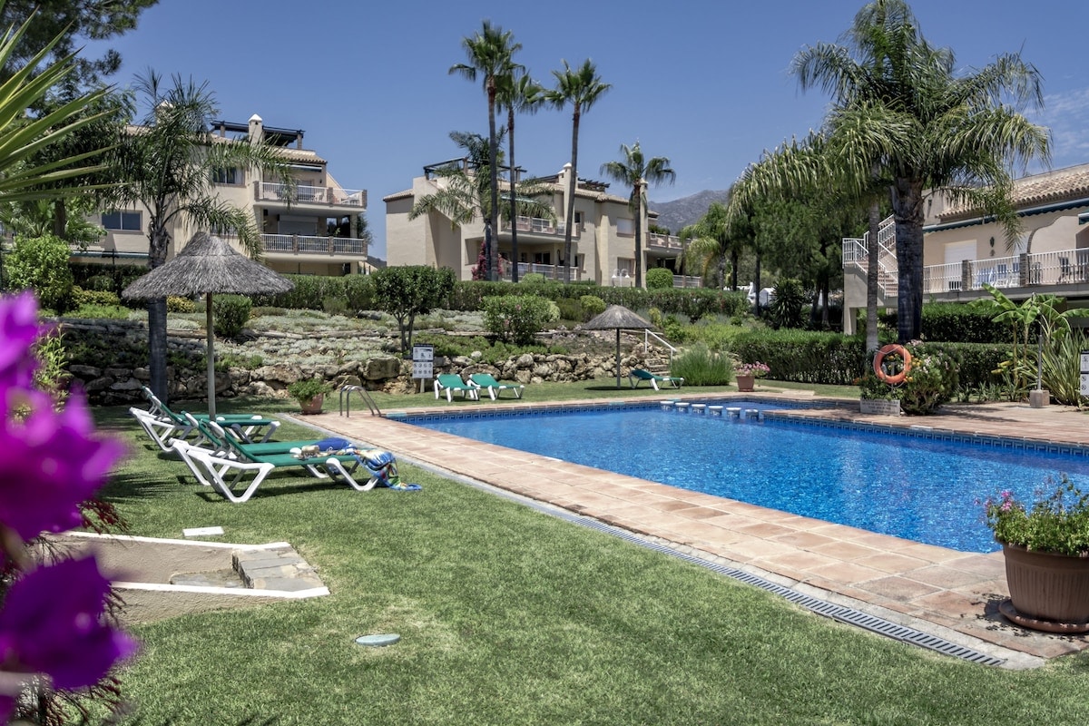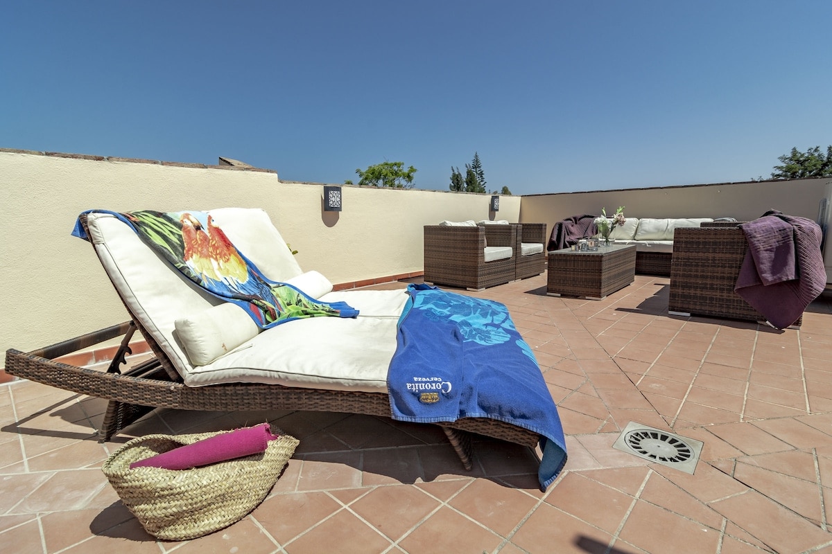 The house is situated in a charming neighborhood in a suburb.This 3 bedroom penthouse apartment in Nueva Andalucia has capacity for