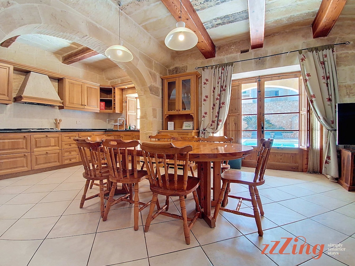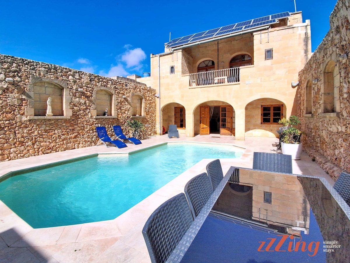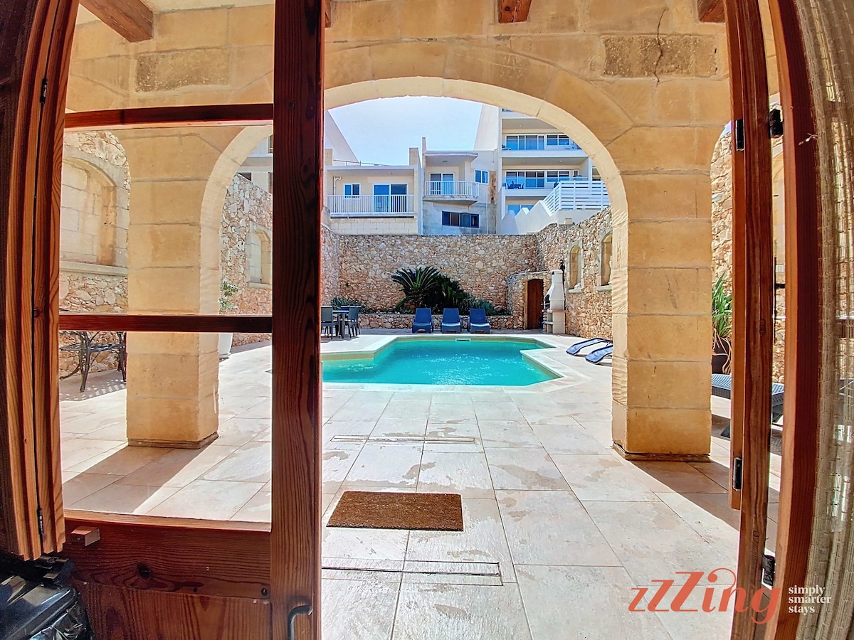 +++ Huge place, looked exactly like the photos. Amazing pool and amazing outside area in general. Aircon works really well, showers work really well. Good location and Gozo in general is beautiful. The host is very responsive to any questions and does not intrude - - - Severe lack of amenities like cooking and cleaning equipment. Some of the devices have European plugs which don’t work in Malta. The aircon system functions using €1 coins which is fine and understandable but they should warn guests of this in advance, as we arrived late Friday night and were caught out. Not the accommodations fault but there is very loud construction work from 8.30 until 7.30 which can be quite disruptive to peace. I imagine this won’t last forever but as I write in June 2025 it’s clearly not close to being done. Also not the accommodations fault but there are thousands and thousands of bugs so bring repellant.