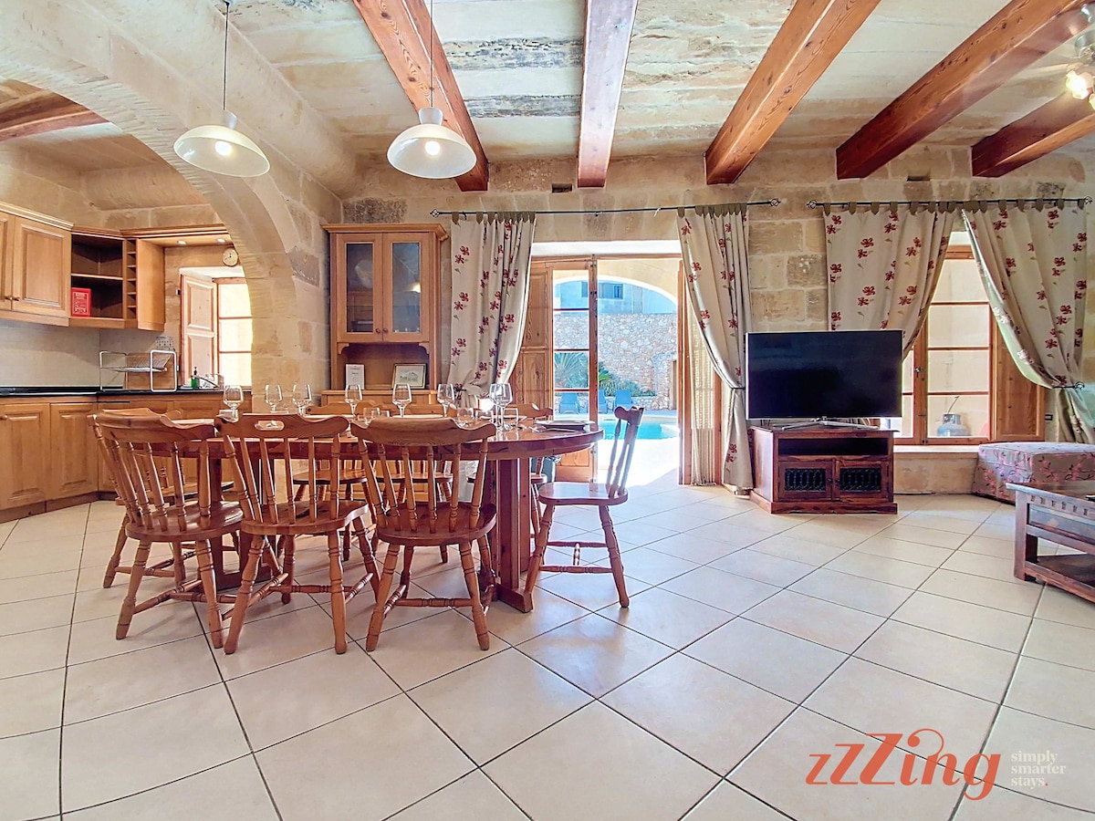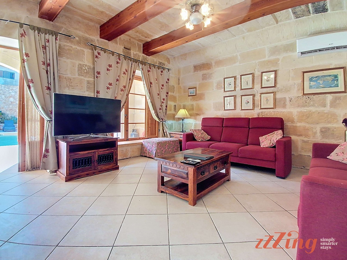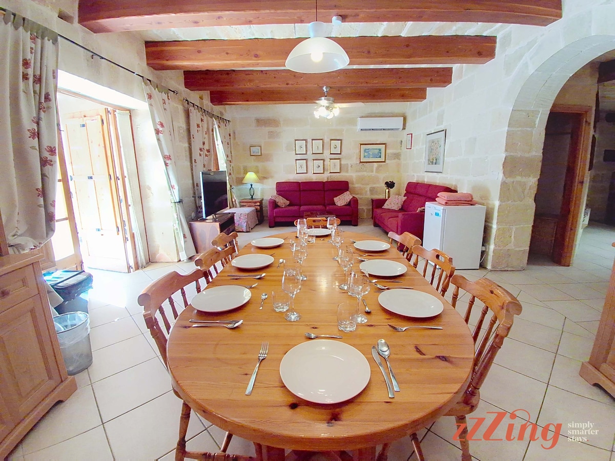 +++ Huge place, looked exactly like the photos. Amazing pool and amazing outside area in general. Aircon works really well, showers work really well. Good location and Gozo in general is beautiful. The host is very responsive to any questions and does not intrude - - - Severe lack of amenities like cooking and cleaning equipment. Some of the devices have European plugs which don’t work in Malta. The aircon system functions using €1 coins which is fine and understandable but they should warn guests of this in advance, as we arrived late Friday night and were caught out. Not the accommodations fault but there is very loud construction work from 8.30 until 7.30 which can be quite disruptive to peace. I imagine this won’t last forever but as I write in June 2025 it’s clearly not close to being done. Also not the accommodations fault but there are thousands and thousands of bugs so bring repellant.