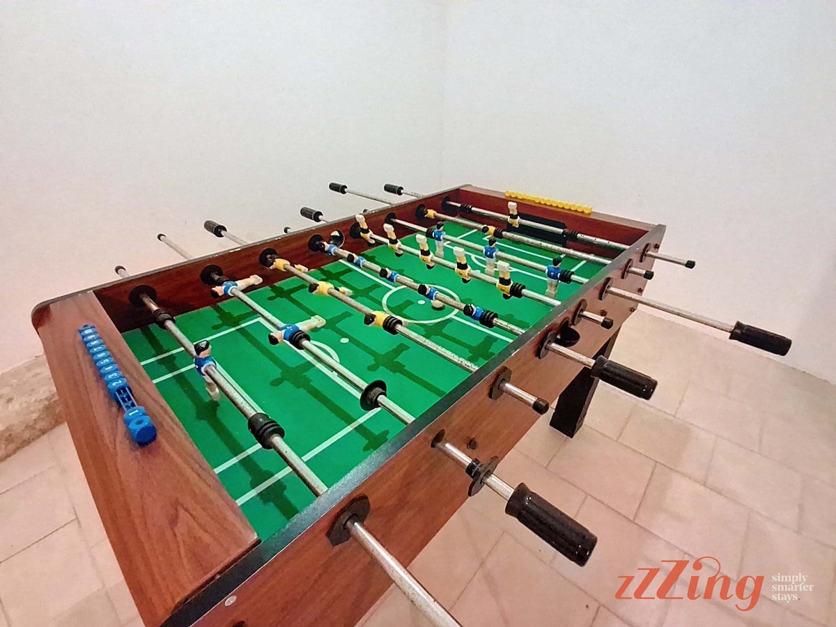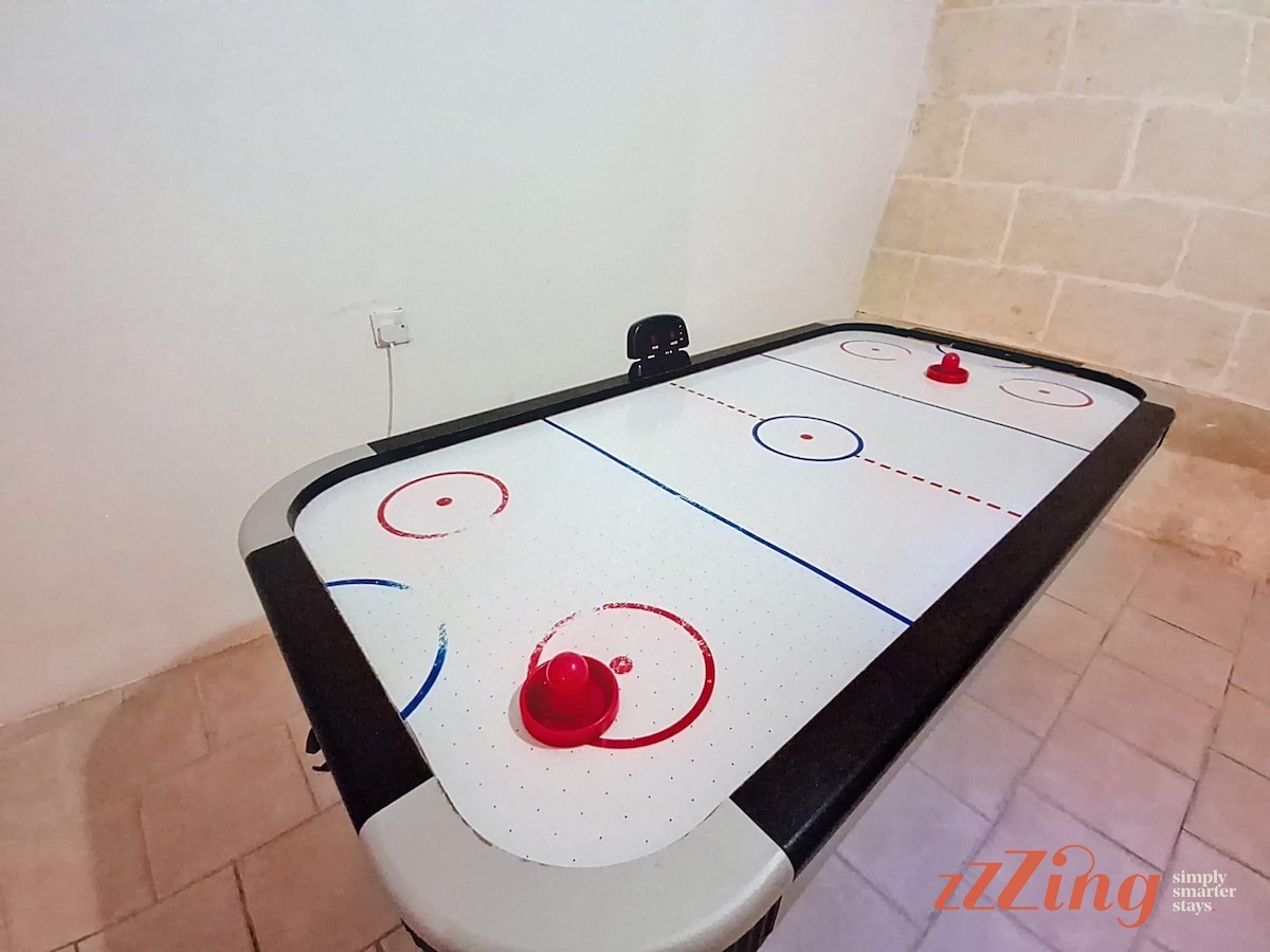The games room offers hours of entertainment for all ages, featuring a retro gaming console, air hockey table, and foosball — making it a family favorite spot.