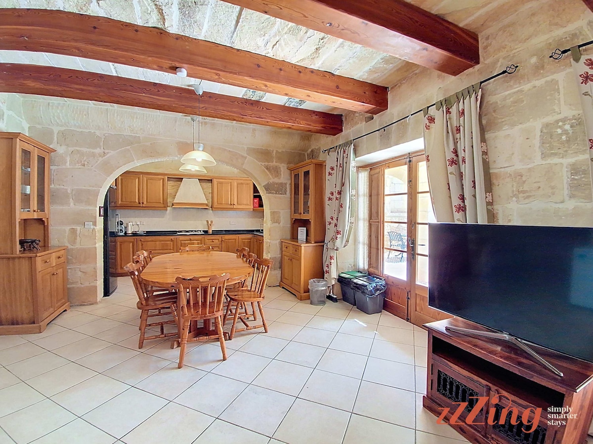 Step inside and discover the perfect balance between heritage and comfort. Exposed stone walls, arched ceilings, and vintage Maltese décor create an authentic Gozitan atmosphere.The open-plan living area is bright and inviting — ideal for relaxing after a day at the beach or sightseeing. The kitchen is fully equipped for home-cooked meals or local feasts shared with loved ones.