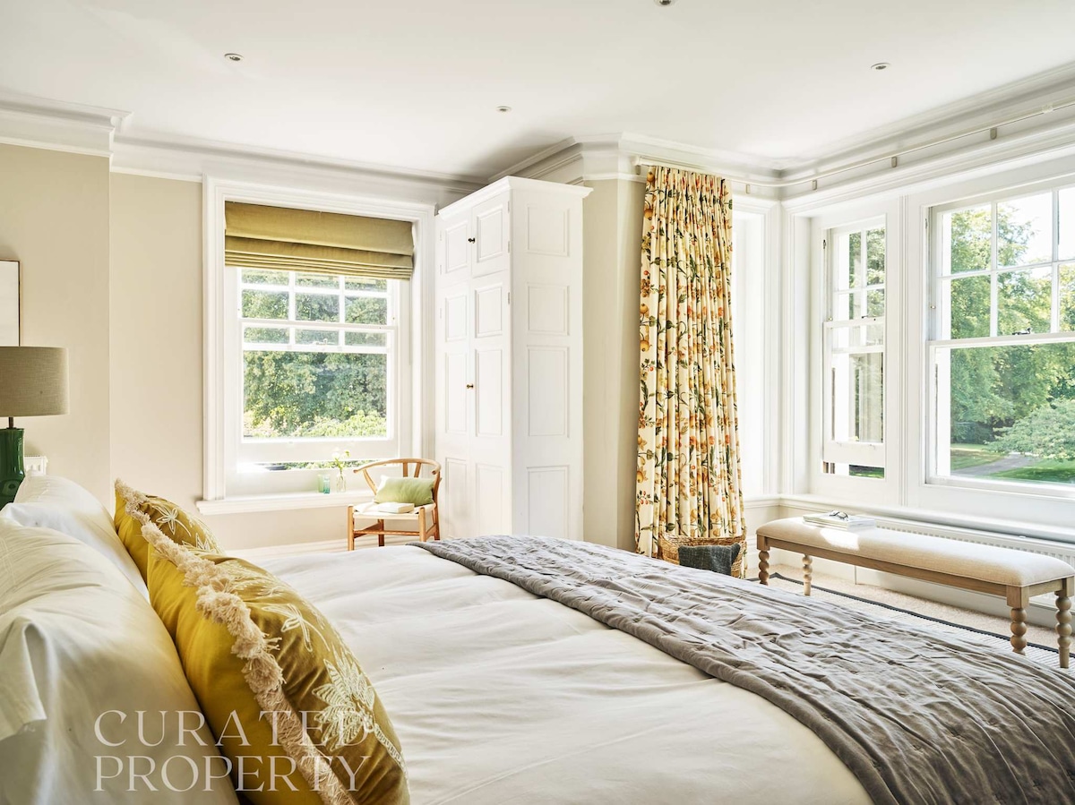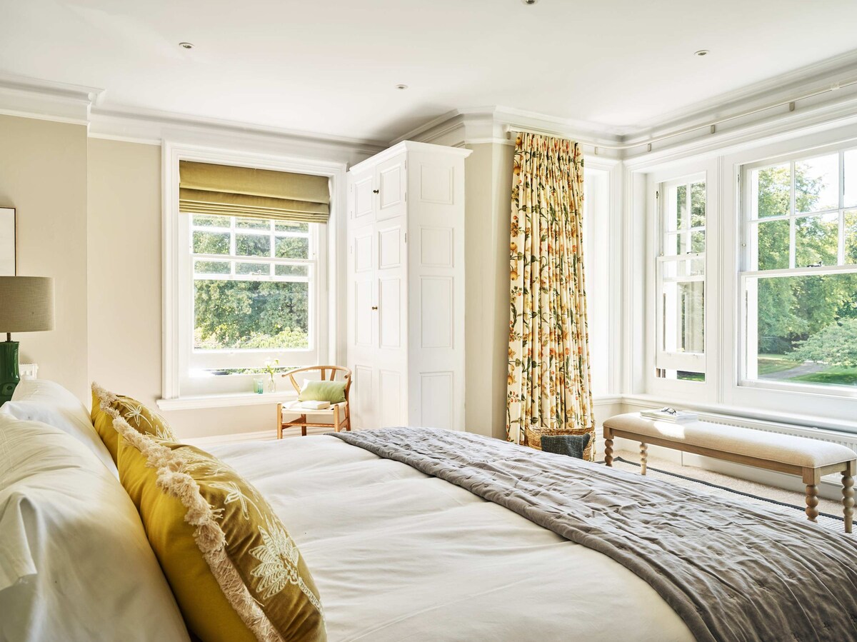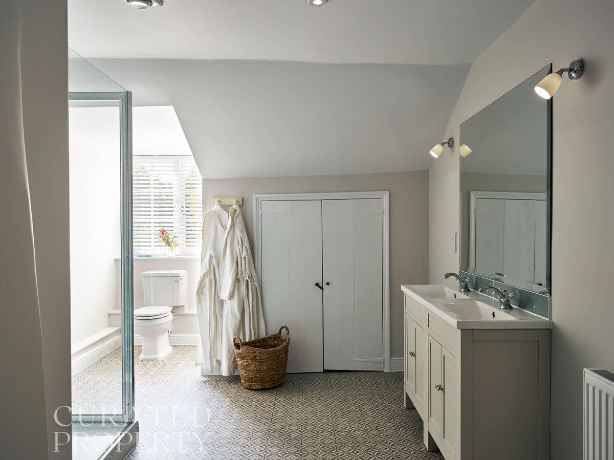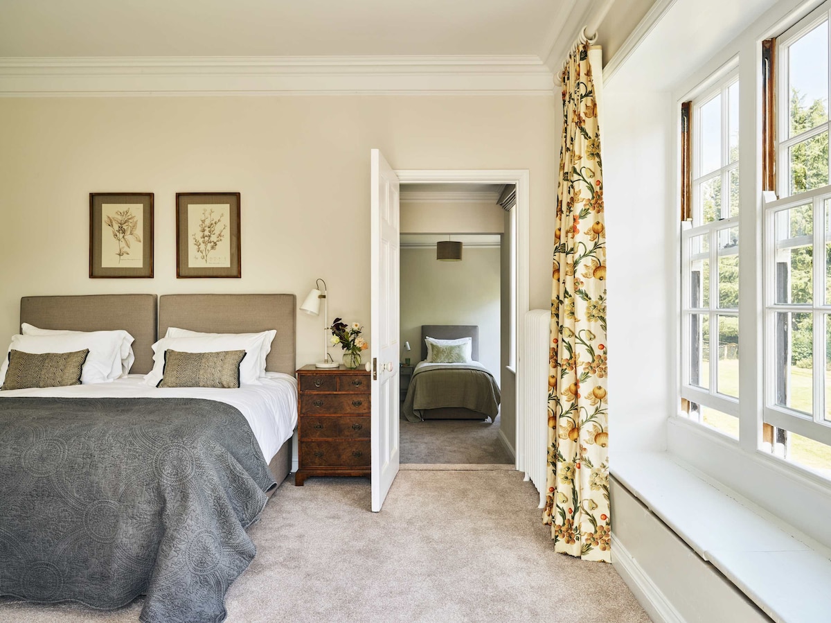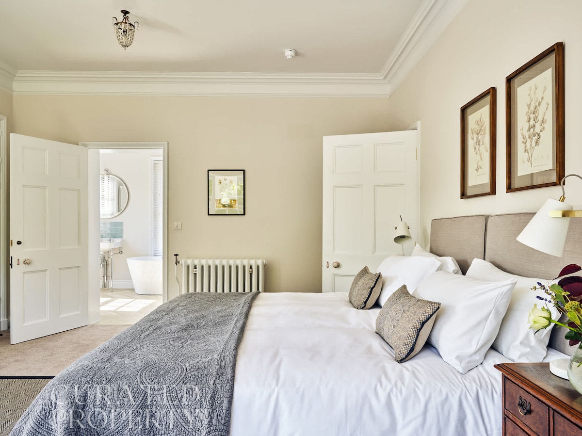 Bedroom one is a monster on the first floor with a superking bed, garden views and en-suite with modern bath. Bedroom two is also a superking with en-suite and views over the huge front grounds. Bedrooms three and four offer a superking or twins with a shower en-suite and a private bathroom respectively, while bedroom five provides two single beds with private bathroom opposite.