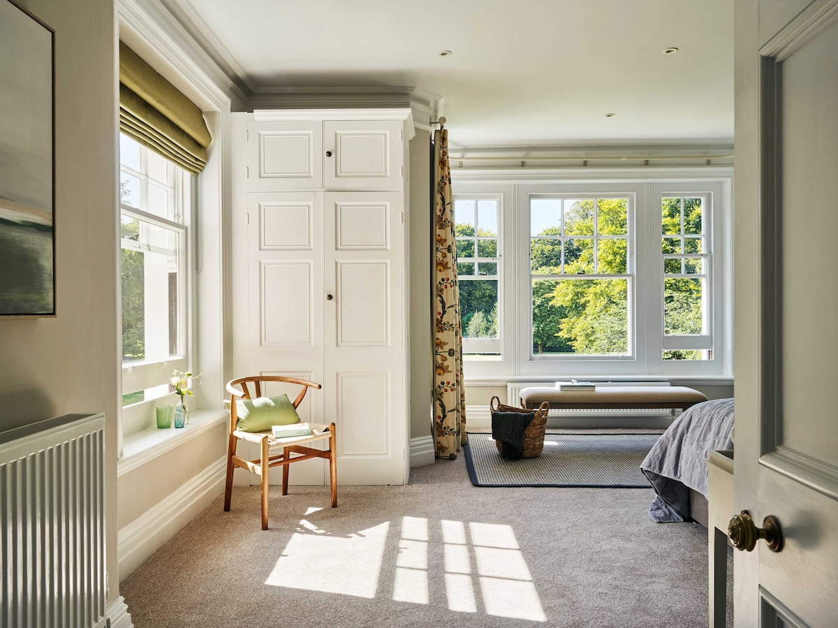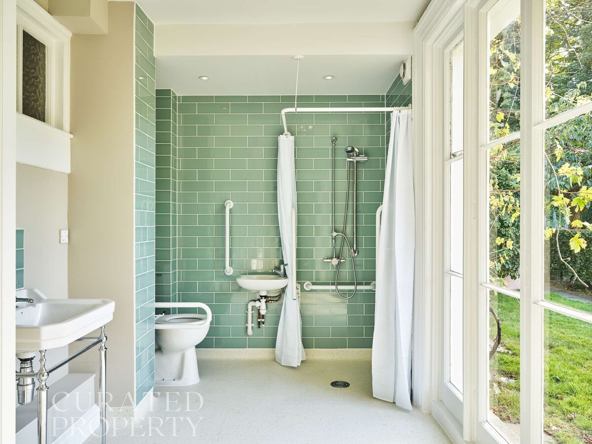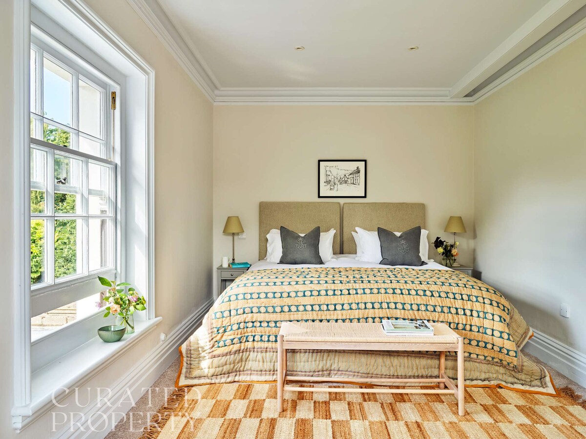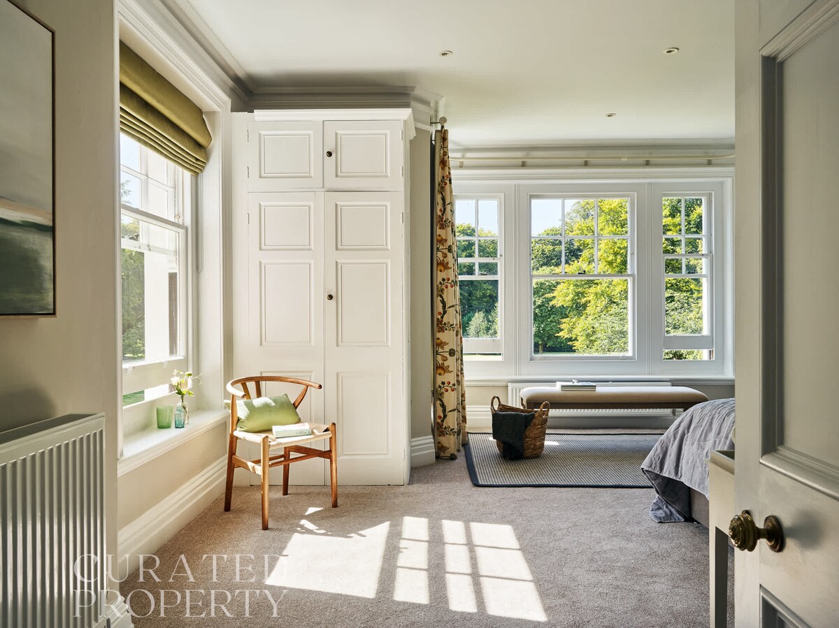 Bedroom one is a monster on the first floor with a superking bed, garden views and en-suite with modern bath. Bedroom two is also a superking with en-suite and views over the huge front grounds. Bedrooms three and four offer a superking or twins with a shower en-suite and a private bathroom respectively, while bedroom five provides two single beds with private bathroom opposite.