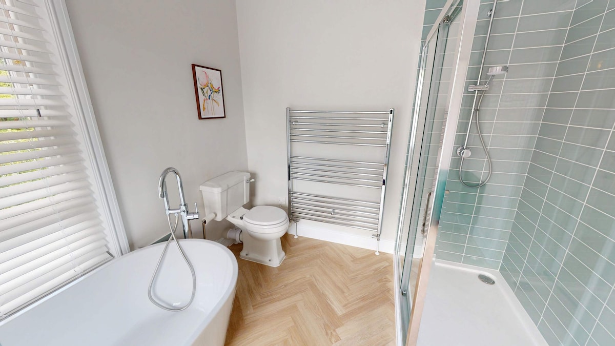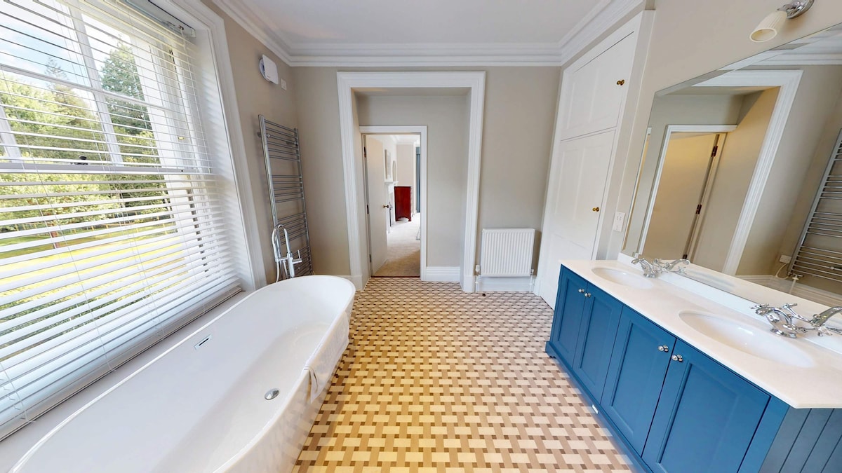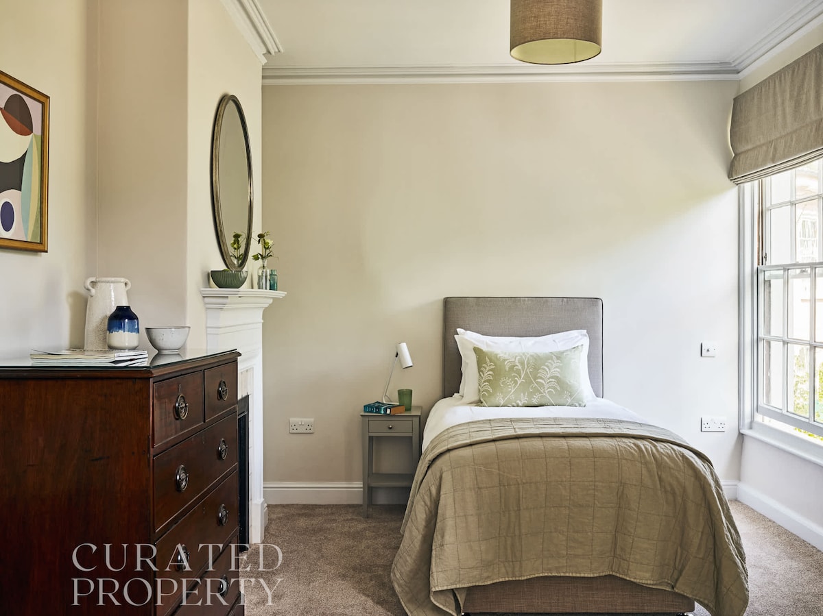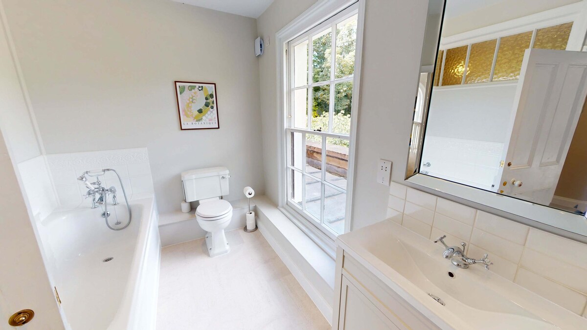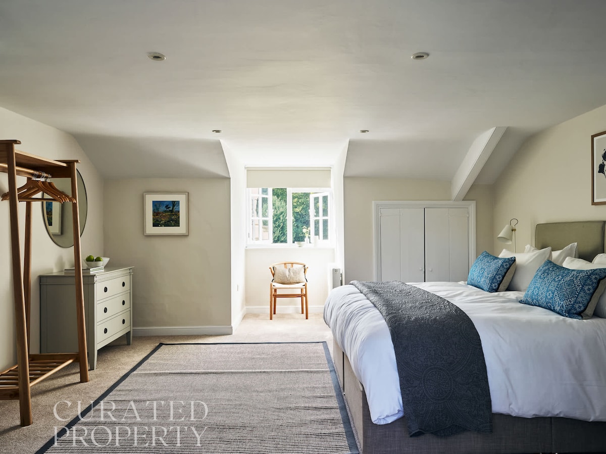 Bedroom one is a monster on the first floor with a superking bed, garden views and en-suite with modern bath. Bedroom two is also a superking with en-suite and views over the huge front grounds. Bedrooms three and four offer a superking or twins with a shower en-suite and a private bathroom respectively, while bedroom five provides two single beds with private bathroom opposite.