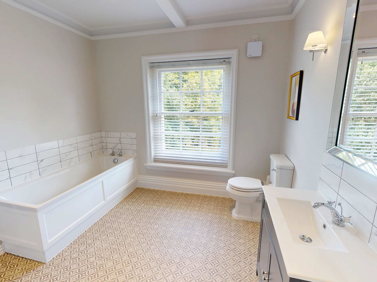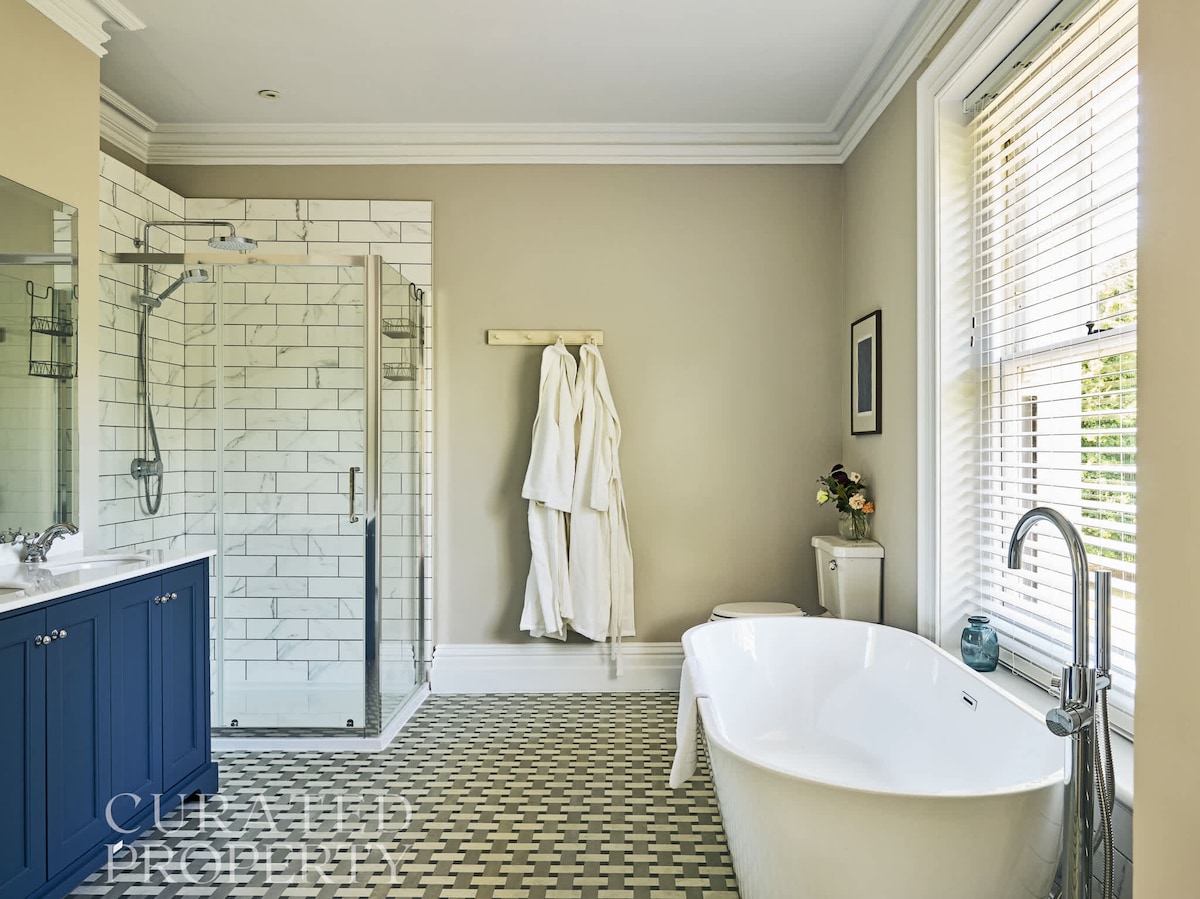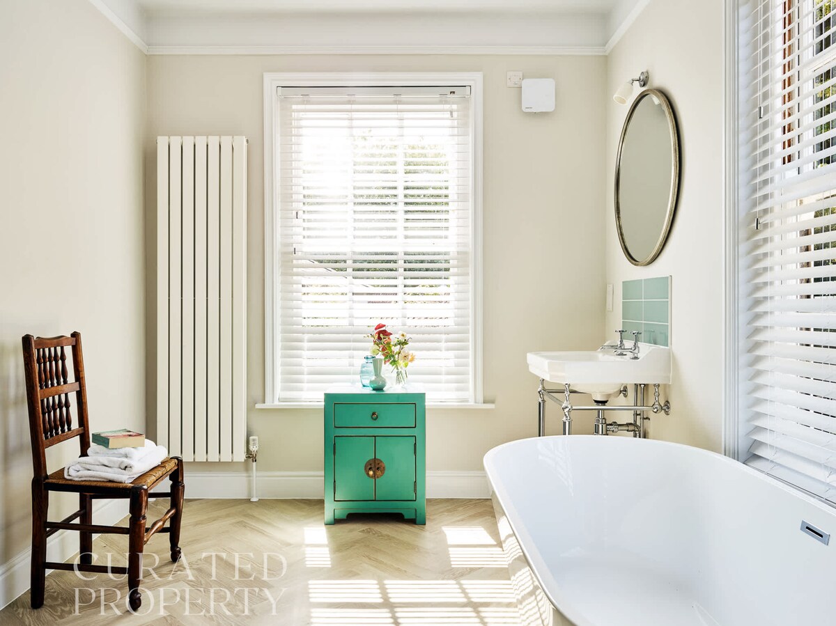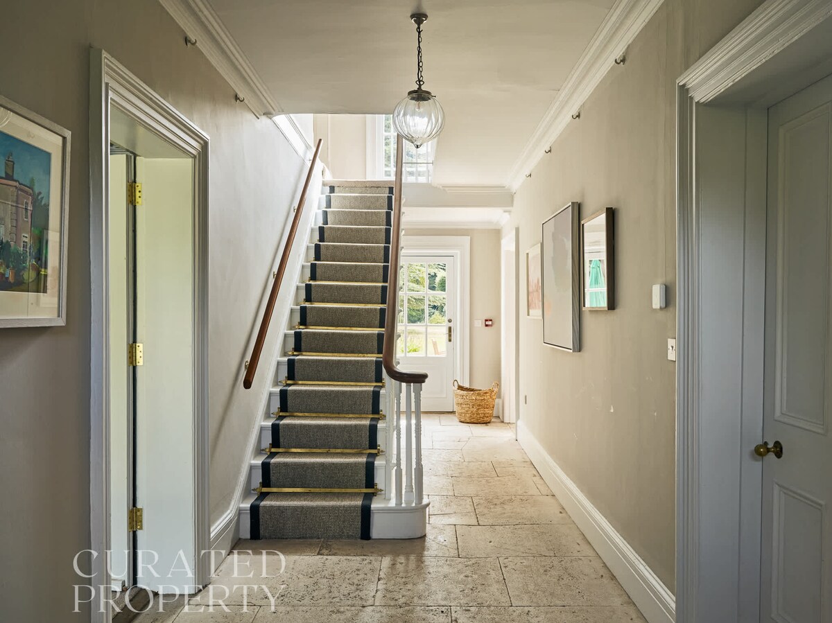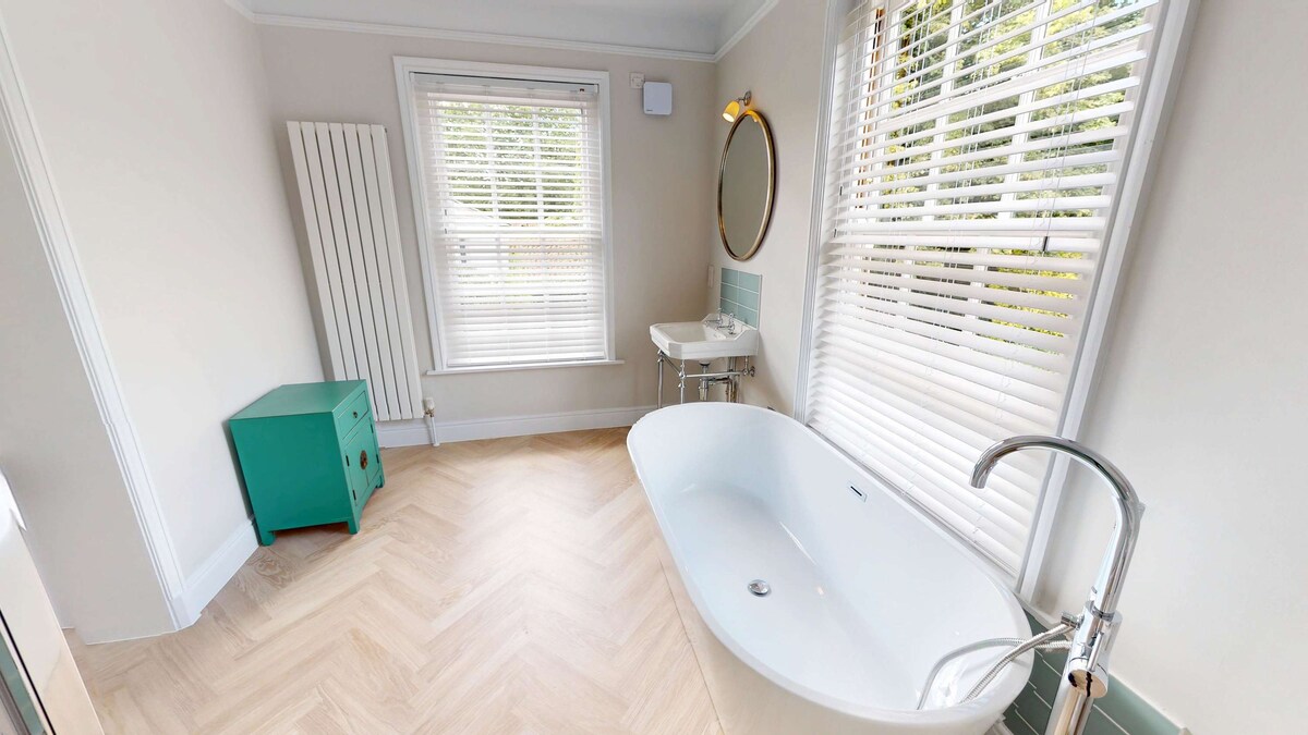 Bedroom one is a monster on the first floor with a superking bed, garden views and en-suite with modern bath. Bedroom two is also a superking with en-suite and views over the huge front grounds. Bedrooms three and four offer a superking or twins with a shower en-suite and a private bathroom respectively, while bedroom five provides two single beds with private bathroom opposite.
